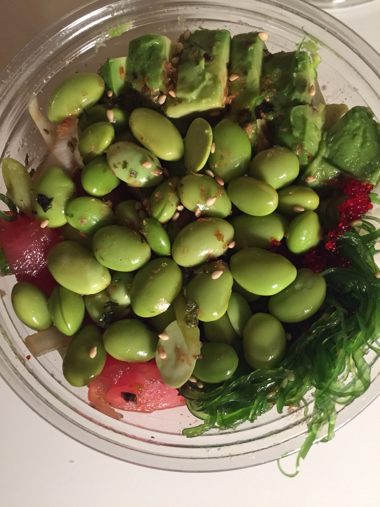 I wanted to order a half and half poke bowl with tuna and octopus, but they ran out of octopus so I got all ahi and added avocado and edamame with spicy sauce on the side. I was pleasantly surprised, first by seeing the portion size, and then by tasting the freshness. For less than $13 (including the extra avocado and edamame) you get a huge cup of yumminess – you couldn’t spend that at any sushi place and get this much food. Plus, the only other time I think of raw fish to go is the sushi counter at Duane Reade. No thank you.