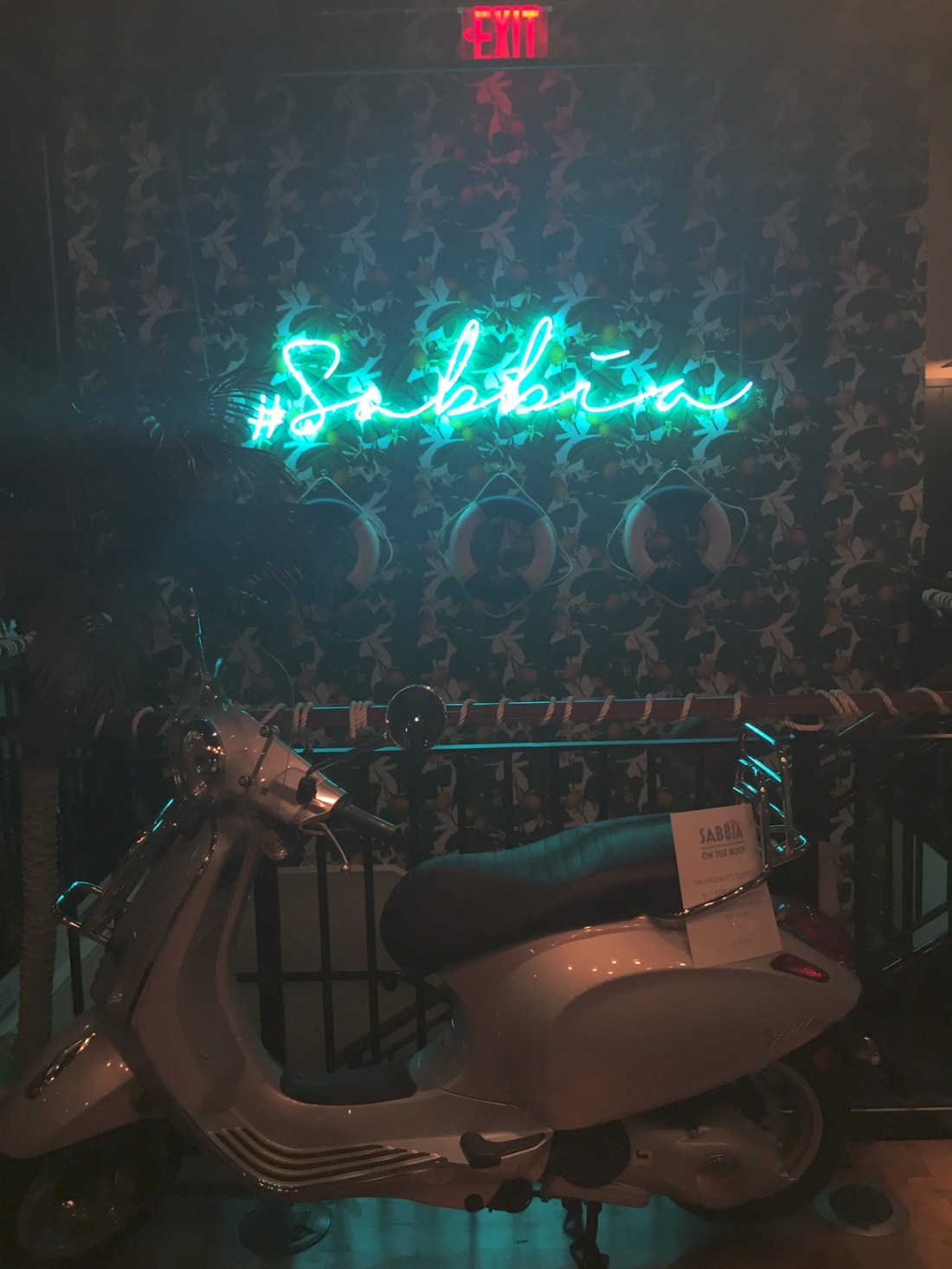 You probably don’t need an excuse to go to Eataly; I certainly don’t.  But just in case you haven’t been in a while and are looking for a reason to stop by, just know that they’ve been doing seasonal updates to their rooftop bar, La Birreria.  I never made it to their Alpine lodge winter version, so I wanted to make sure I got to check out Sabbia, their beachy summer version.  After Brittany and I did major damage at a Bandier sample sale (sorry, retail therapy was necessary) we decided to head there for a drink.