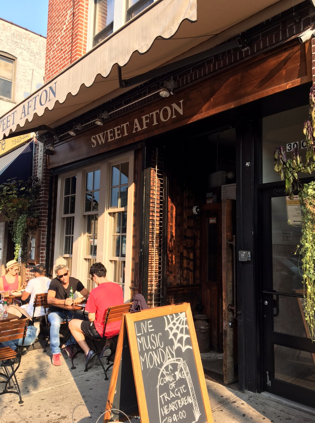 After doing some research, I learned Sweet Afton is owned by the same folks as Wilfie and Nell, a West Village standby. Same cool, dark wood and industrial pipe vibe but with even better food. Currently, there are some Halloween decorations up, but they totally jive with the moody look of the restaurant.
