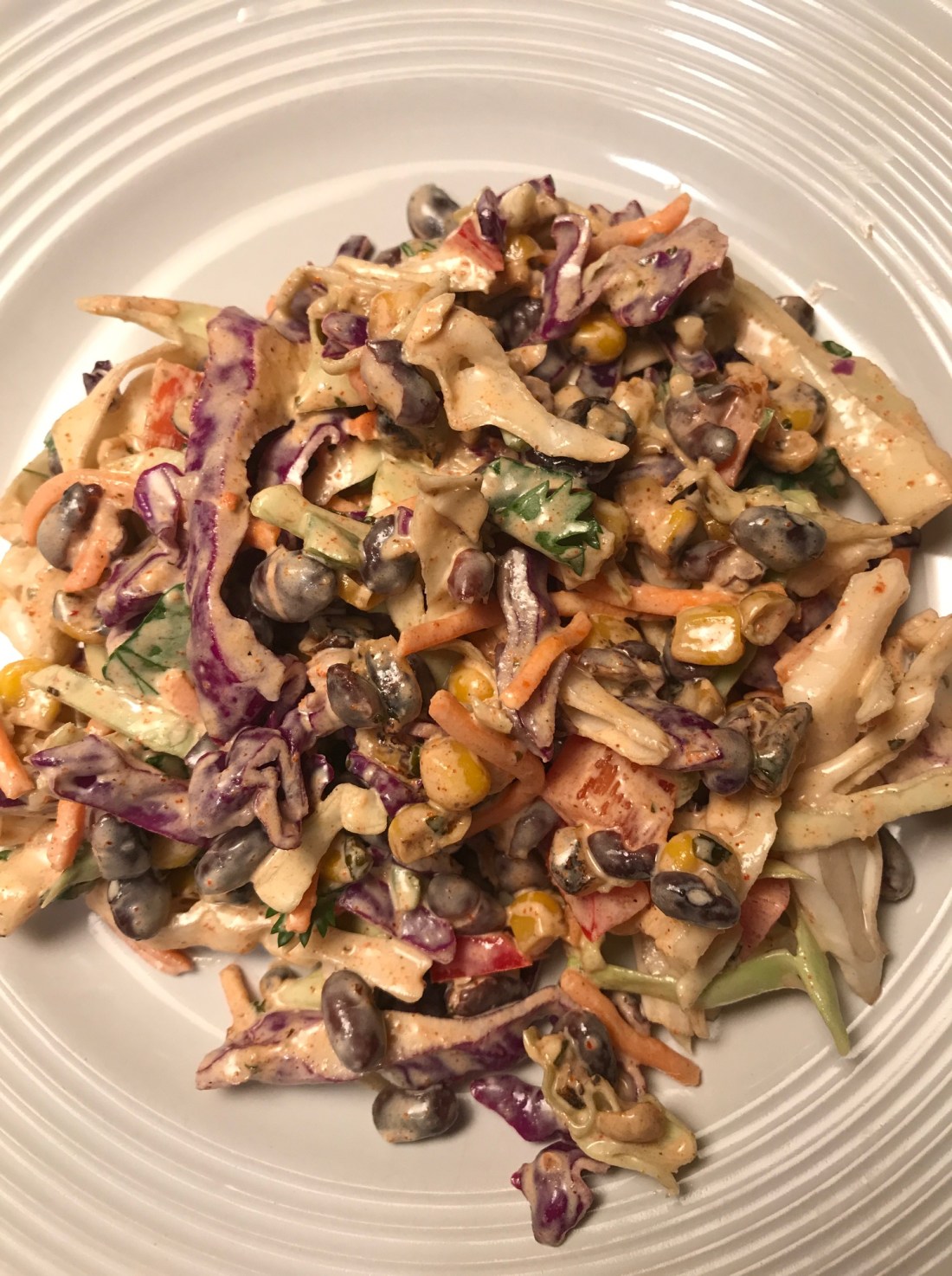 The addition of black beans and corn is kind of a big deal. It’s not just boring, basic crunch crunch crunch. Honestly, this is more like a salad. Honestly, add a hard boiled egg to it, maybe some broccoli, and some crushed tortilla chips and this is as good as anything you could order at Chop’t or Just Salad (for half the price).