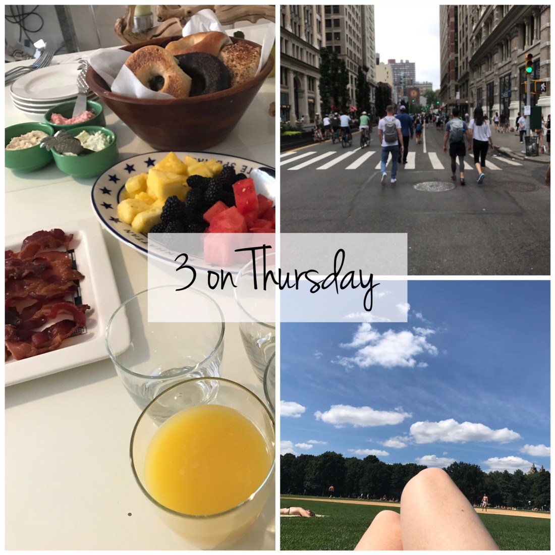 One of the coolest things about Manhattan in August is Summer Streets. A huge stretch of Park Avenue is shut down between 7 AM and 1 PM every Saturday of the month. You can bike, runs, or stroll right down the middle of the street. Not only is it great to get active, it feels oddly liberating. I managed to squeeze in a 3.25 mile run just before they opened the streets back up to traffic, and it was a great way to get energized before meeting friends for rooftop drinks.