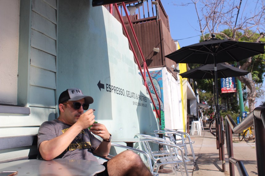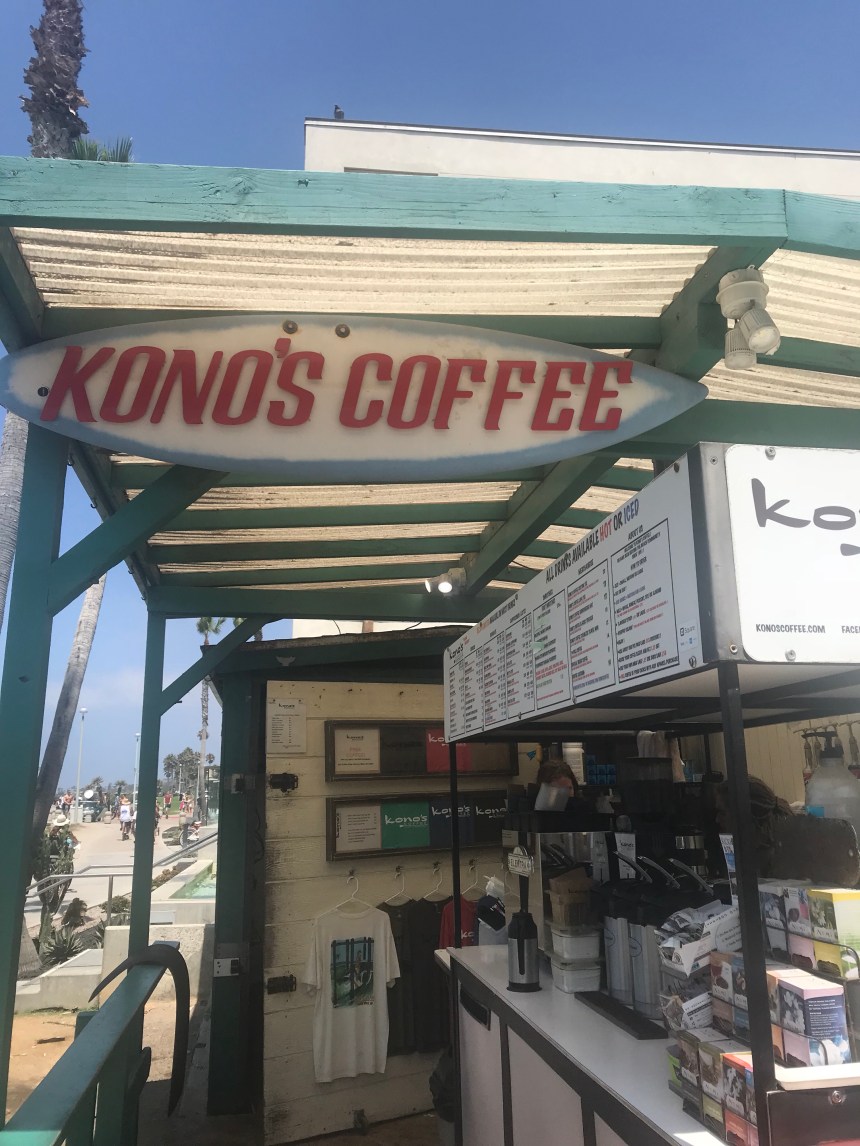 I desperately needed coffee so my first stop at Pacific Beach was Kono’s Coffee. This shack is better than most for two reasons: 1) it’s directly on the beach (even bad coffee tastes good on the water) and 2) they introduced me to using chocolate milk in coffee drinks. Why have regular steamed milk I. Your latte or redeye when you could have steamed chocolate milk. A revelation.