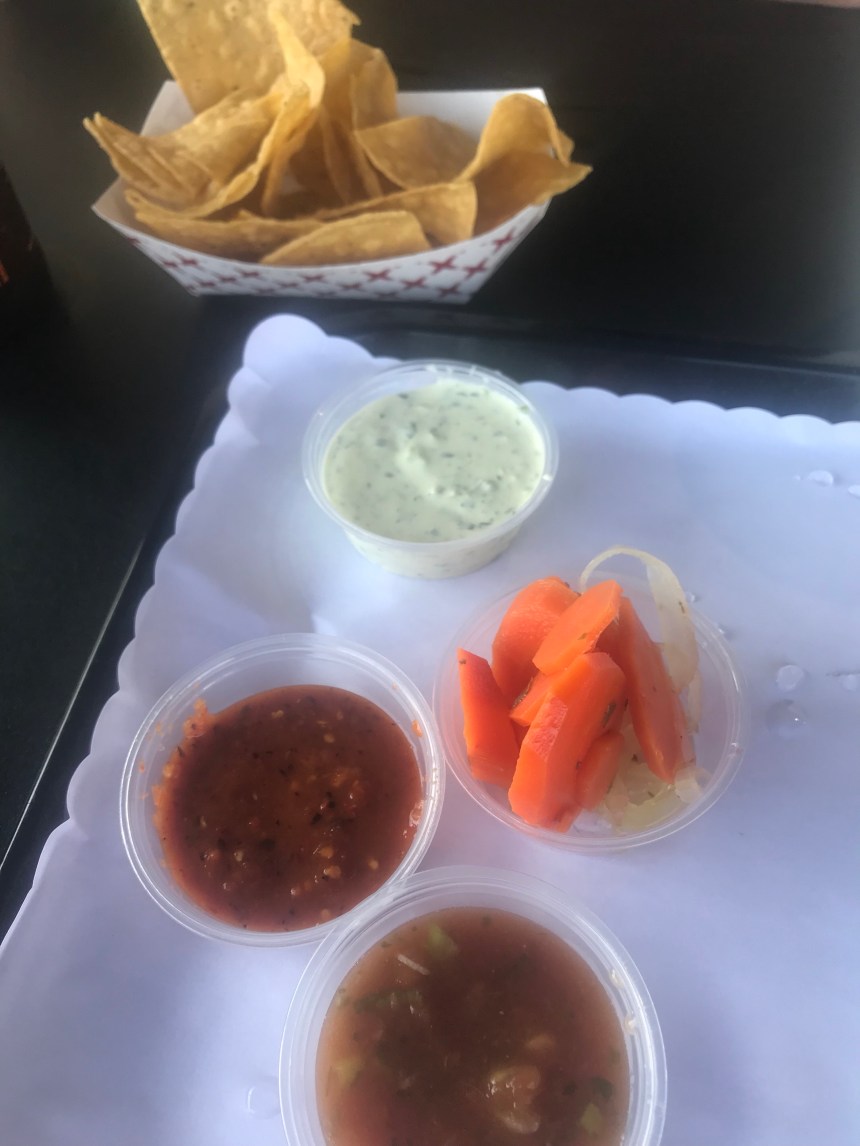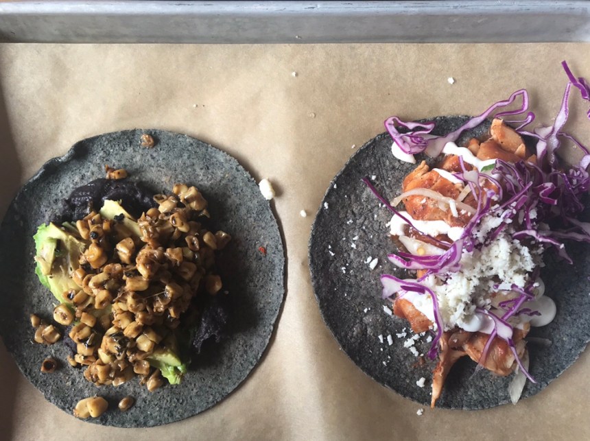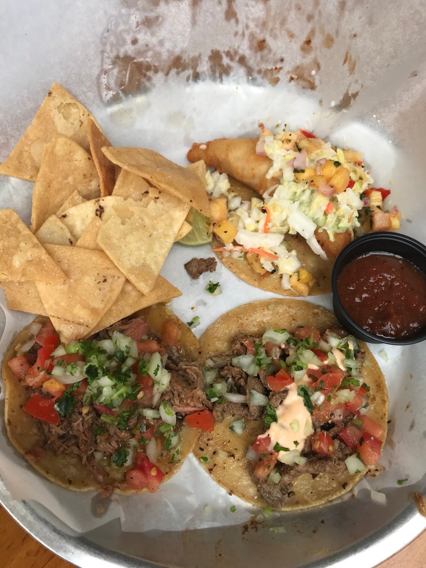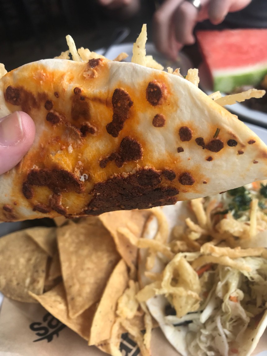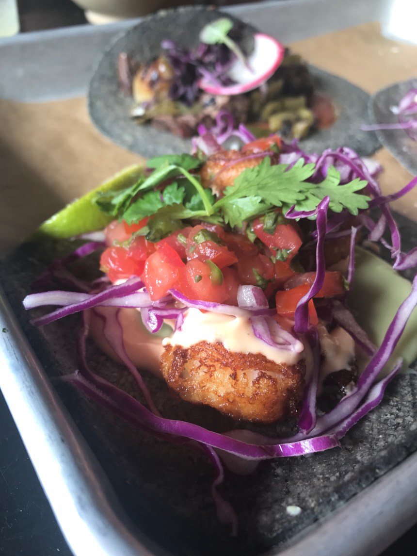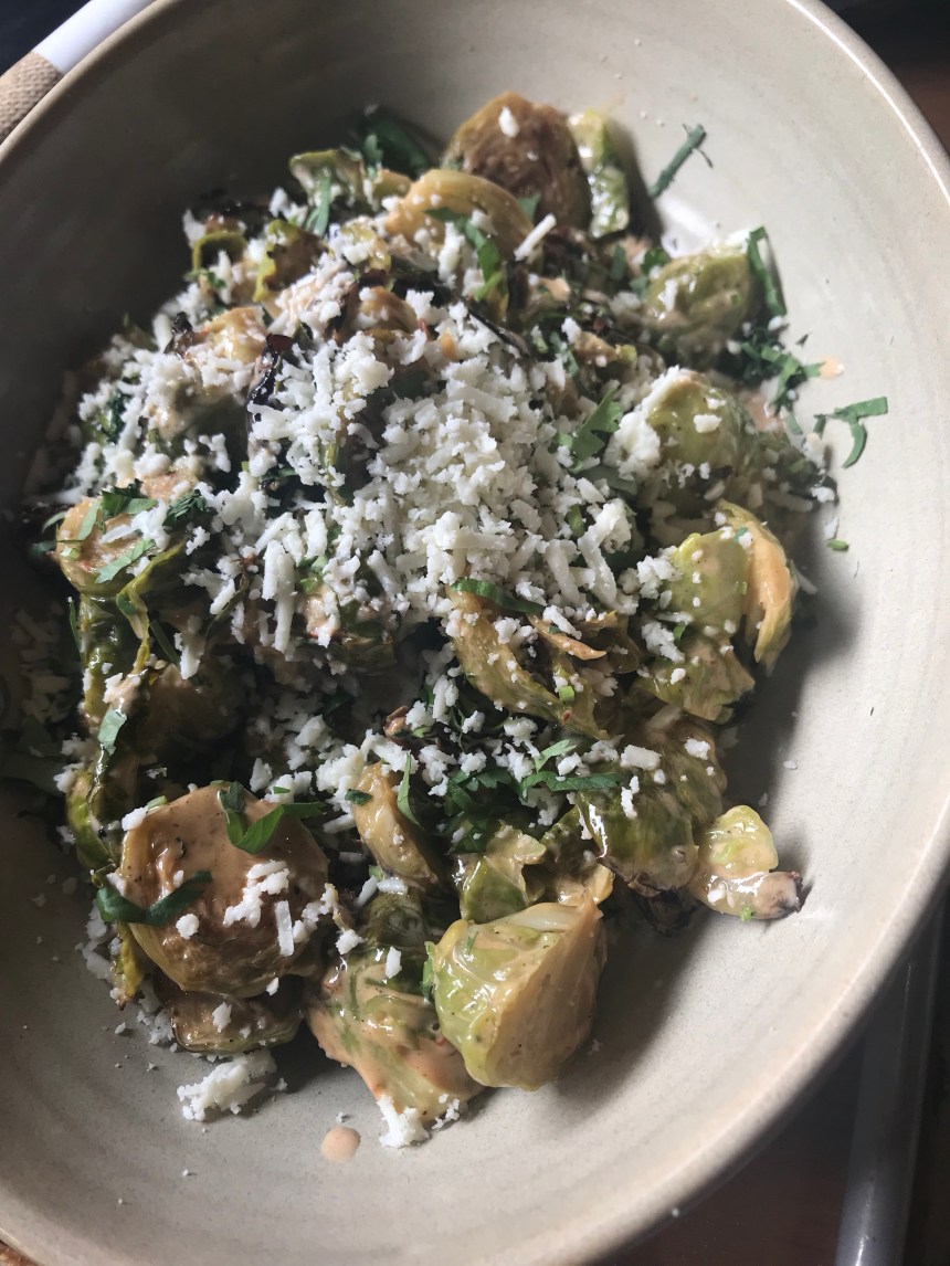 We were still a little full from our earlier snack but soldiered on in the name of taco research. Albert and I both got the chicken tinga taco, but then he went with [I think] a steak and a fish, while I tried the grilled avocado as well as a side of Brussels sprouts.