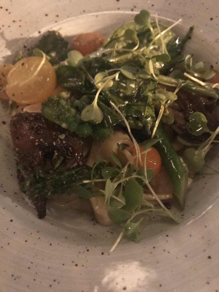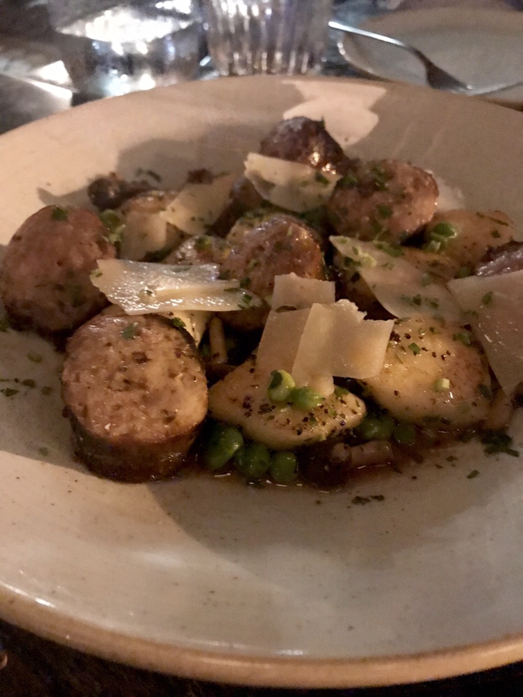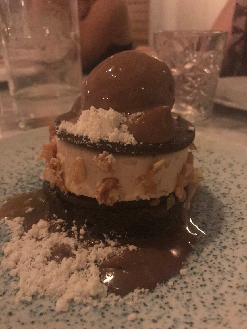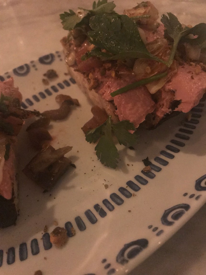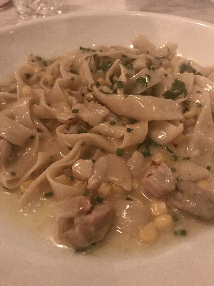We shared a bunch of apps and desserts and each got our own entree. I don’t remember every single item, but I do remember the standouts: the grilled avocado with nuoc cham (?), sesame seed crunch,burrata, and trout roe was absolutely fabulous and will need to be attempted by yours truly soon. I also loved the chicken liver toast. The pizza and cauliflower hummus were enjoyed by the whole table, and the peanut butter mousse dessert was the group fave (and we tried every single dessert). The only thing I thought was just ok was my fettuccine with clams and corn. The white wine and preserved lemon sauce was just a biiiiit too tangy. But overall, it was a fab meal.