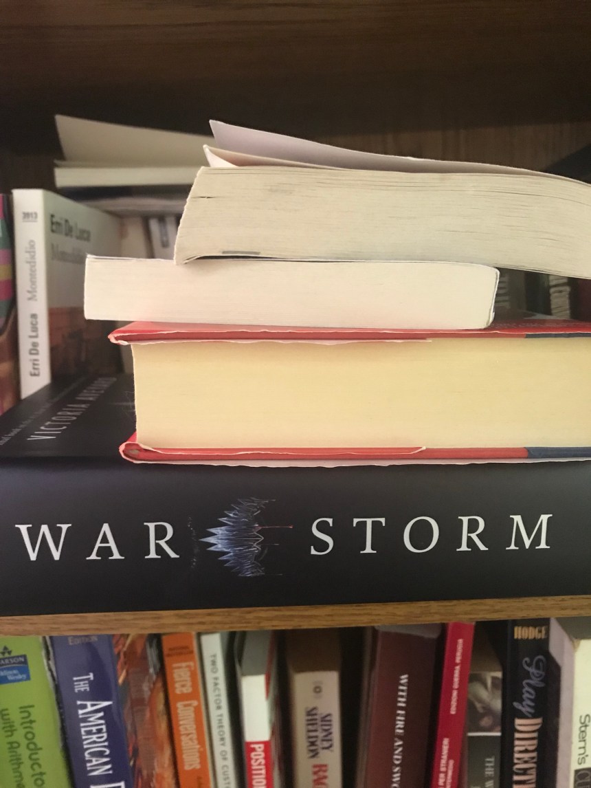 War Storm – While I really enjoyed the Red Queen series overall (see here for my review if book 3), this fourth and final installment was not my fave. I found it to be slow and essentially battle scene after battle scene. I like a good action moment, but it was the psychology part that hooked me in this book originally. I will give author Aveyard credit for giving the romance piece the ending it probably deserved (though I won’t tell you what that is because, spoilers).