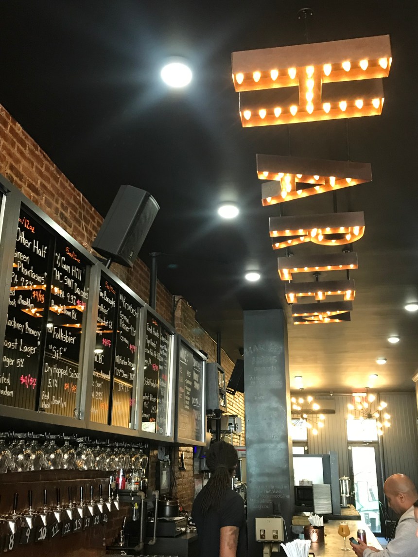 This place looks like it could be in Brooklyn, and for good reason – why should uptown residents need to travel to another borough for a craft beer experience?! It’s got an industrial vibe with neon, marquee lights, and a chalkboard wall bathroom (where we had to leave our mark, of course).