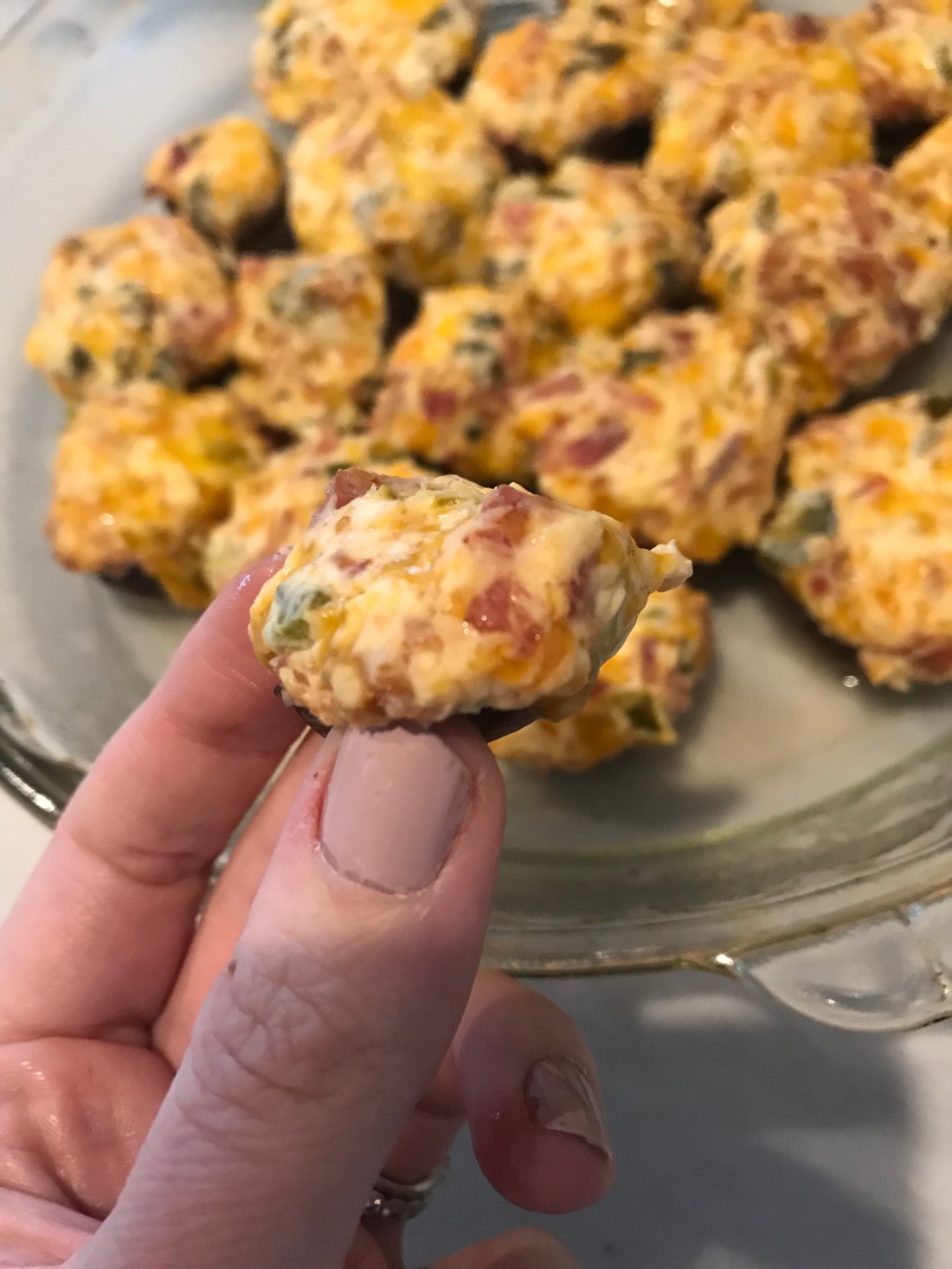 I followed this recipe and thought it was super simple. Basically, you mix up 8 oz cream cheese, a 4 oz can of diced jalapeños, 2 cloves garlic, 6 oz shredded cheddar, and cooked bacon. Then you stuff mushroom caps with the filling and bake at 350 for 15 min. How easy is it? I made this over a week ago and didn’t have to re-consult the recipe to write it down right here.