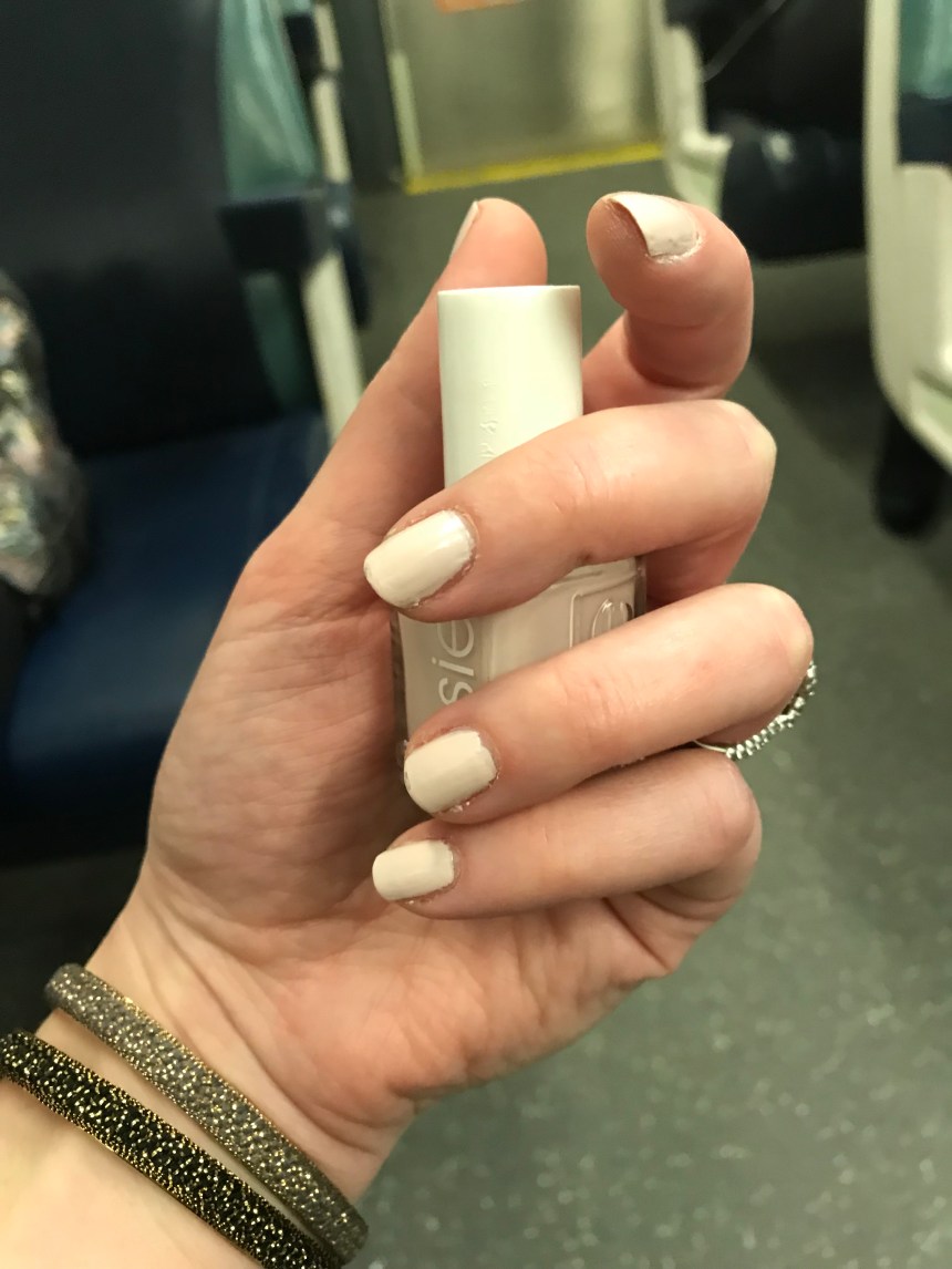 - What It Is: Nail polish described as “warm ivory with a dash of pink”