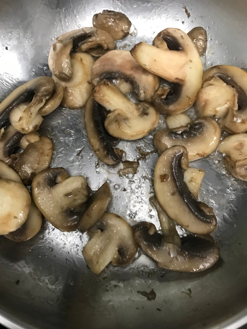 I mixed the bulk of this sauce in advance so I could go watch tv. Combine sour cream, dijon mustard, thinly sliced scallions, and some corn starch. Set aside til you’re about 10 min away from eating. When your pork chops are almost done, sauté sliced mushrooms in a bit of oil. When they get to the point that they release their own juices, their good. Now add your sour cream mixture to the pan along with salt, pepper, and some chicken stock. Use however much stock you need to get it to your preferred consistency. Stir stir stir and then pour over your pork chops after they’ve had a minute to rest. Top with the green part of the scallions because it’s prettyyyy that way.