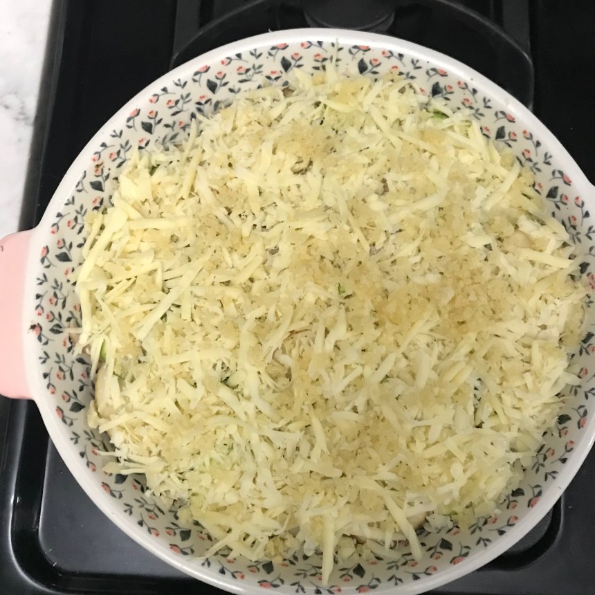 I made my gratin a bit healthier by subbing half the potatoes for zucchini. Also, there was no milk or cream. But make no mistake, it ain’t healthy. It’s still topped with tons cheese of cheese. It’s still a liiiittle bit better, right?