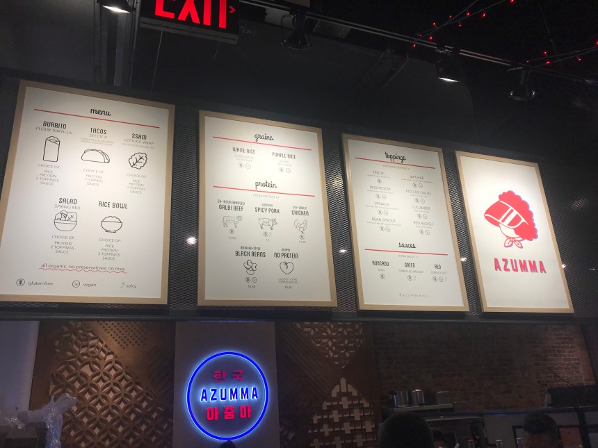 Tucked in the back of Canal Street Market is a good stall that rarely has a long line but is churning out solid lunch food. Azumma is serving Korean-Mexican fusion that can come in burrito, taco, salad, or rice bowl style.