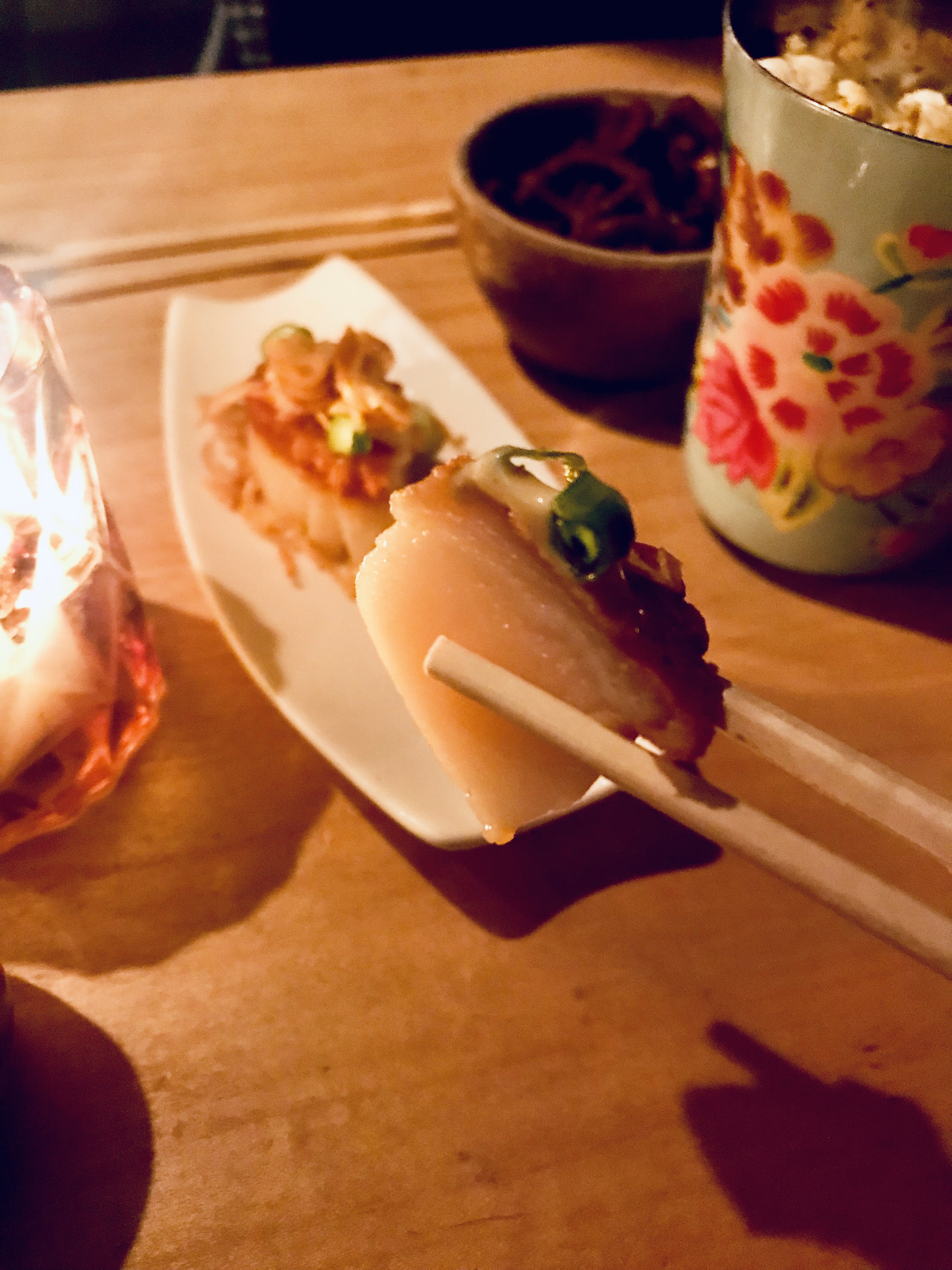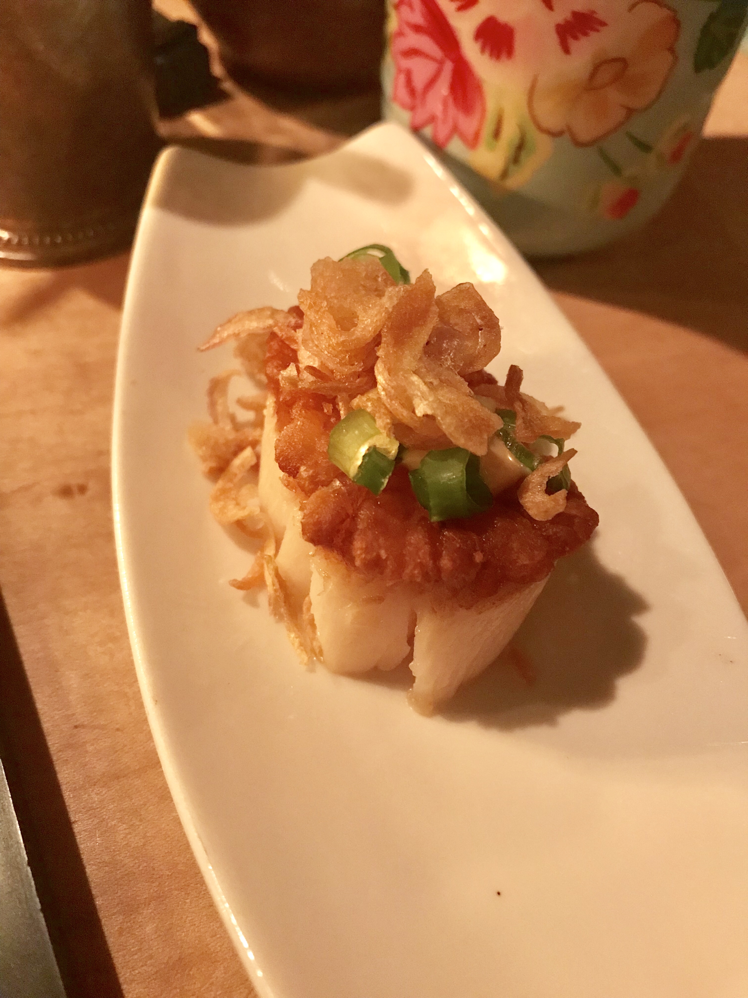 Next we had a jumbo seared sea scallop that was sliced so it could be shared. It was topped with yuzu koshu remoulade. I got no idea what koshu (?) is, but I know I enjoyed this perfectly seared scallop.