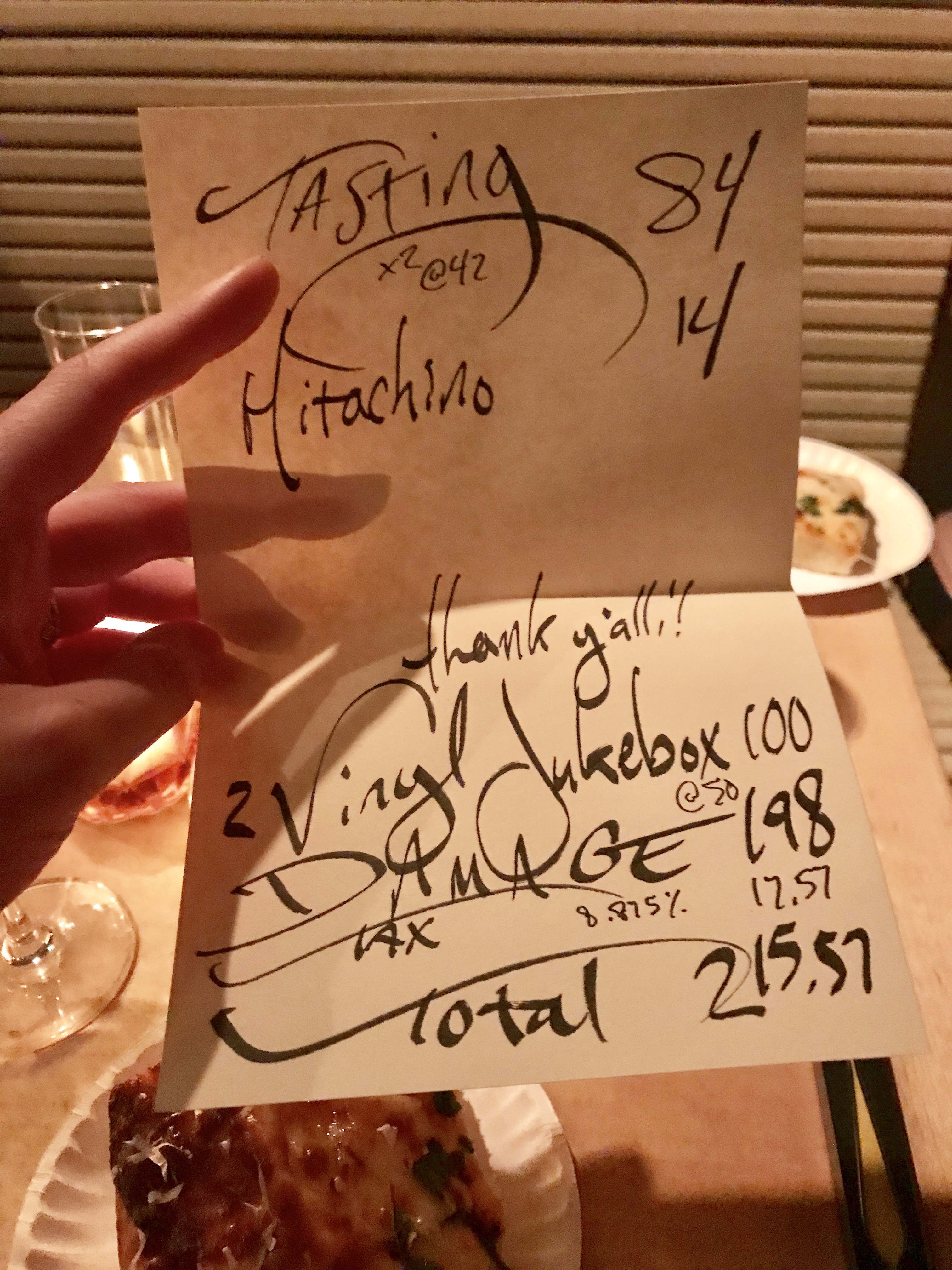 As far as prix fixe meals go, this one is cheap – even more so when you take into account just how good the food is. I pretty much can’t stop thinking about this meal and haven’t been able to throw away our hand calligraphied bill. That attention to detail and general fun vibe (nobody took themselves too seriously and were ready to make this meal a party) made it memorable. I highly recommend the whole experience. When do I get to go again?