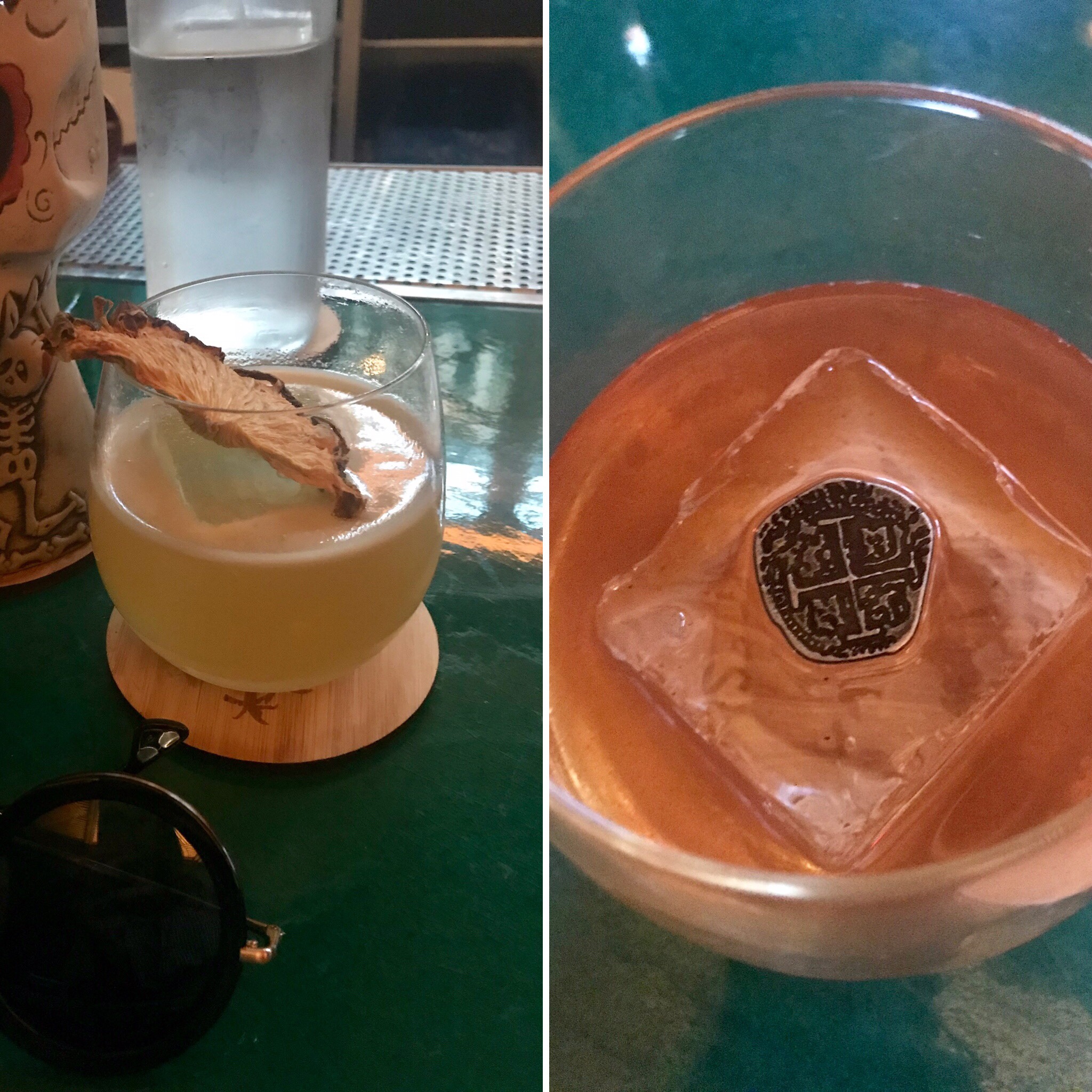 We didn’t eat but noticed some good bar snacks on the menu. We, instead, focused just on drinks. My beau ordered the Vaya Kon Tiki (r(h)ums infused with coconut african redbush tea, ginger, cinnamon, cayenne coconut cream and tropical juices). This is what you think of when you think of a tiki cocktail. A little too sweet for my taste, but what a showstopper. I started with the Rita Hayworth (tequila infused with pineapple and sage, honey, chartreuse and lime) and then moved to the Sao Feng (Japanese whisky, rum infused with chai and mint tea, cinnamon and bitters). I really enjoyed both. I loved the sage peeking through the background of the first cocktail and the cinnamon in the second makes me think it would be ideal around holiday time. You’ll notice I chose two of the only non-rum drinks…because I’m not a huge rum fan, even though it’s the primary tiki spirit. Also, there was serious attention to detail paid. All garnishes and accoutrements were beautiful, from the freeze dried pineapple slice, to the flaming lemon, to the stamped ice cube, to the unique swizzle sticks.
