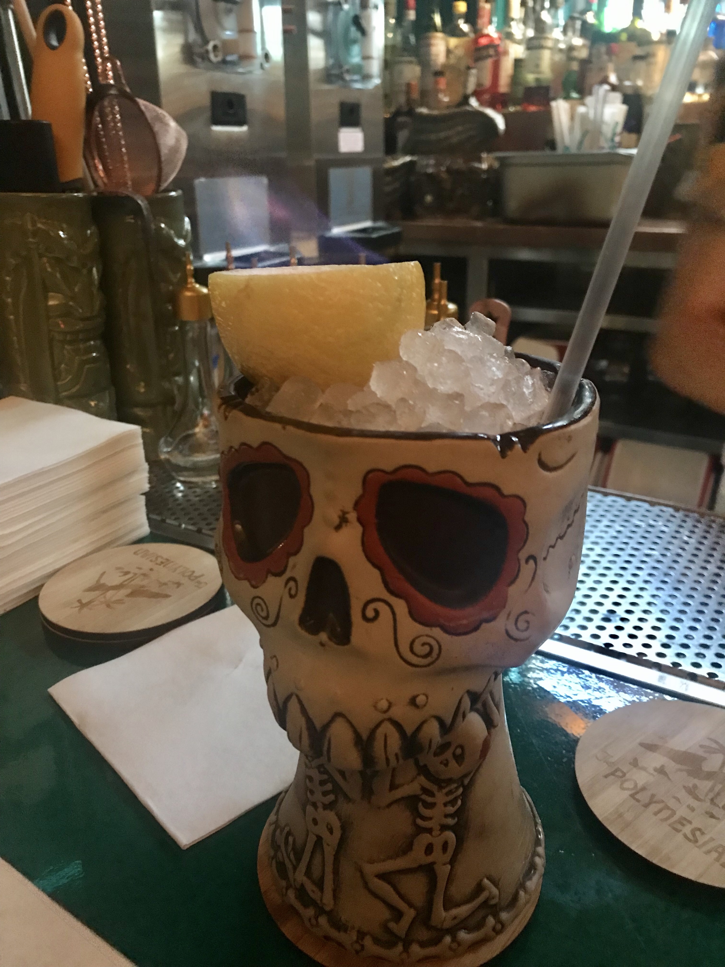 They went ALL IN with this theme. Every large format cocktail is served inside a very on-brand vessel, like a giant conch shell. Every employee is wearing Hawaiian print. There is rattan everywhere. And yet, it’s classy. Maybe it’s because the employees clearly choose their own clothes – it’s all Hawaiian print, but none of it’s matching. Or maybe it’s because the decor is all high end fabrics and flooring. Or maybe it’s because these are very high quality drinks. Whatever it is, it works.