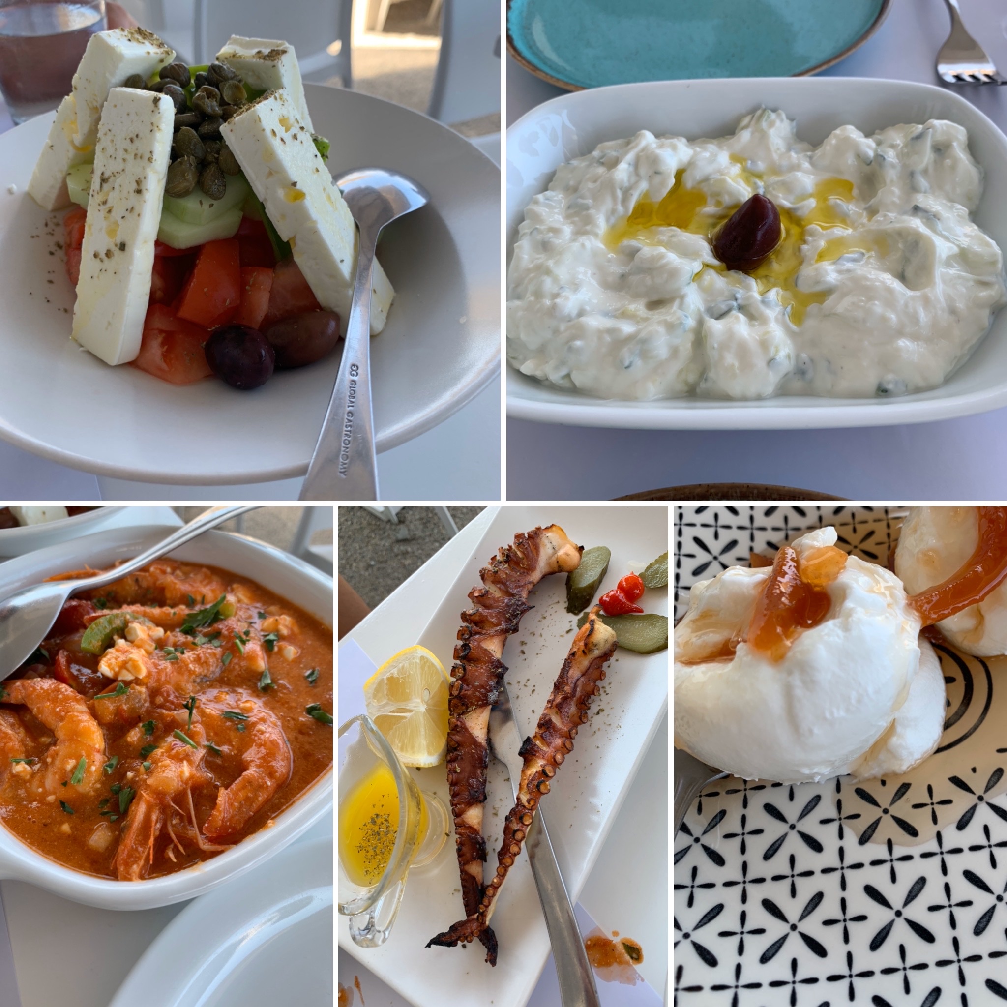 We went to lunch at Taverna Glafkos, right on the water. We had Greek salad, tzaziki, shrimp saganaki, and grilled octopus. It was all very tasty.
