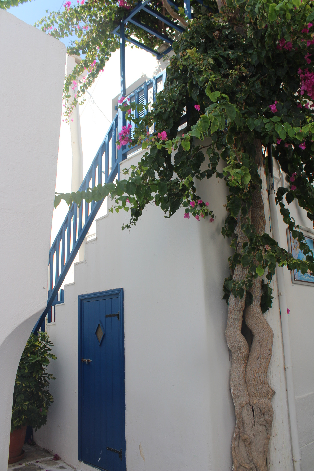After enjoying our welcome drink, we decided to take the 10 minute walk into town, which pretty much looks just like Mykonos – white walls, blue doors, bright pink bougainvillea, stone streets. It’s what I imagine Mykonos was like 50 years ago.