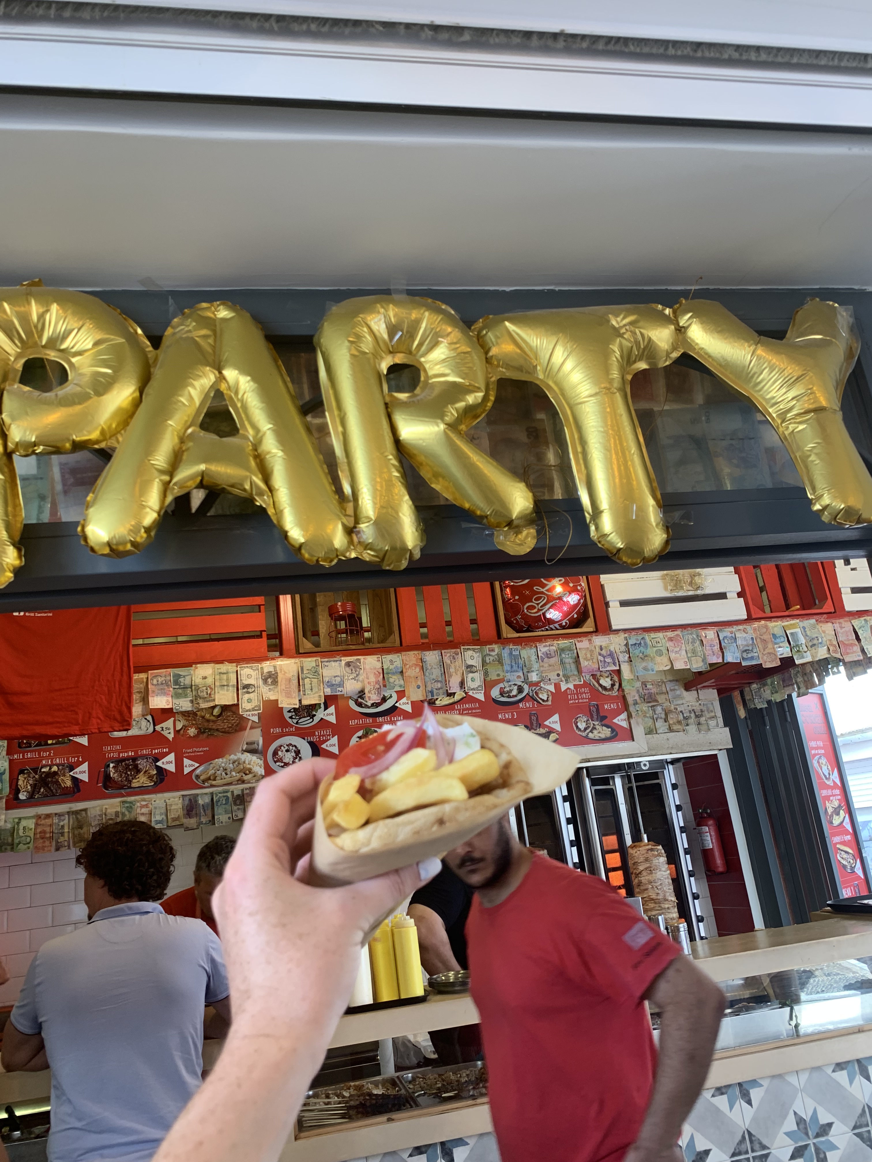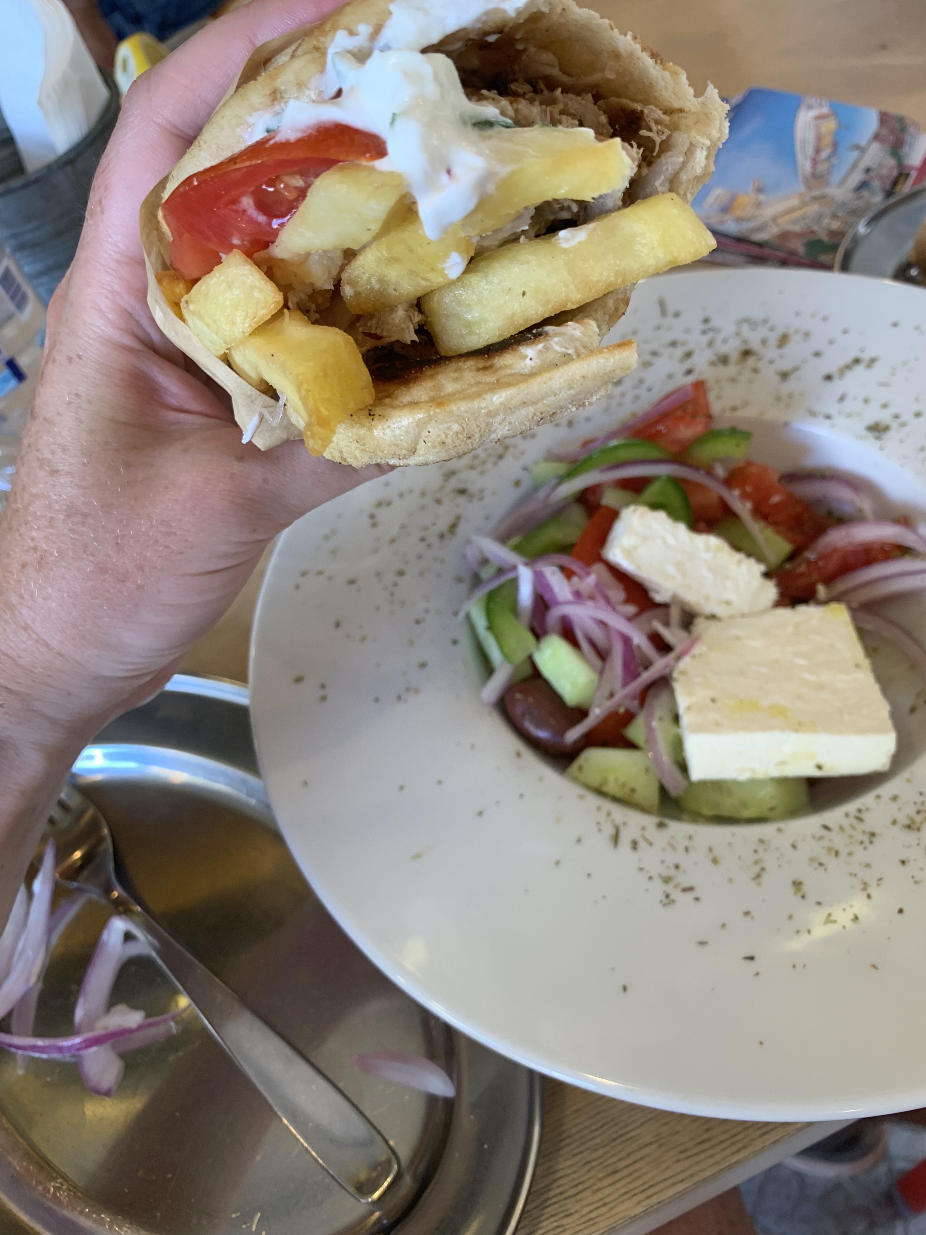 After hiking for several hours in the early afternoon sun, we were sweaty and starving so we got gyros and dips from a place called Meat Corner. Pretty solid gyro. Really hit the spot.