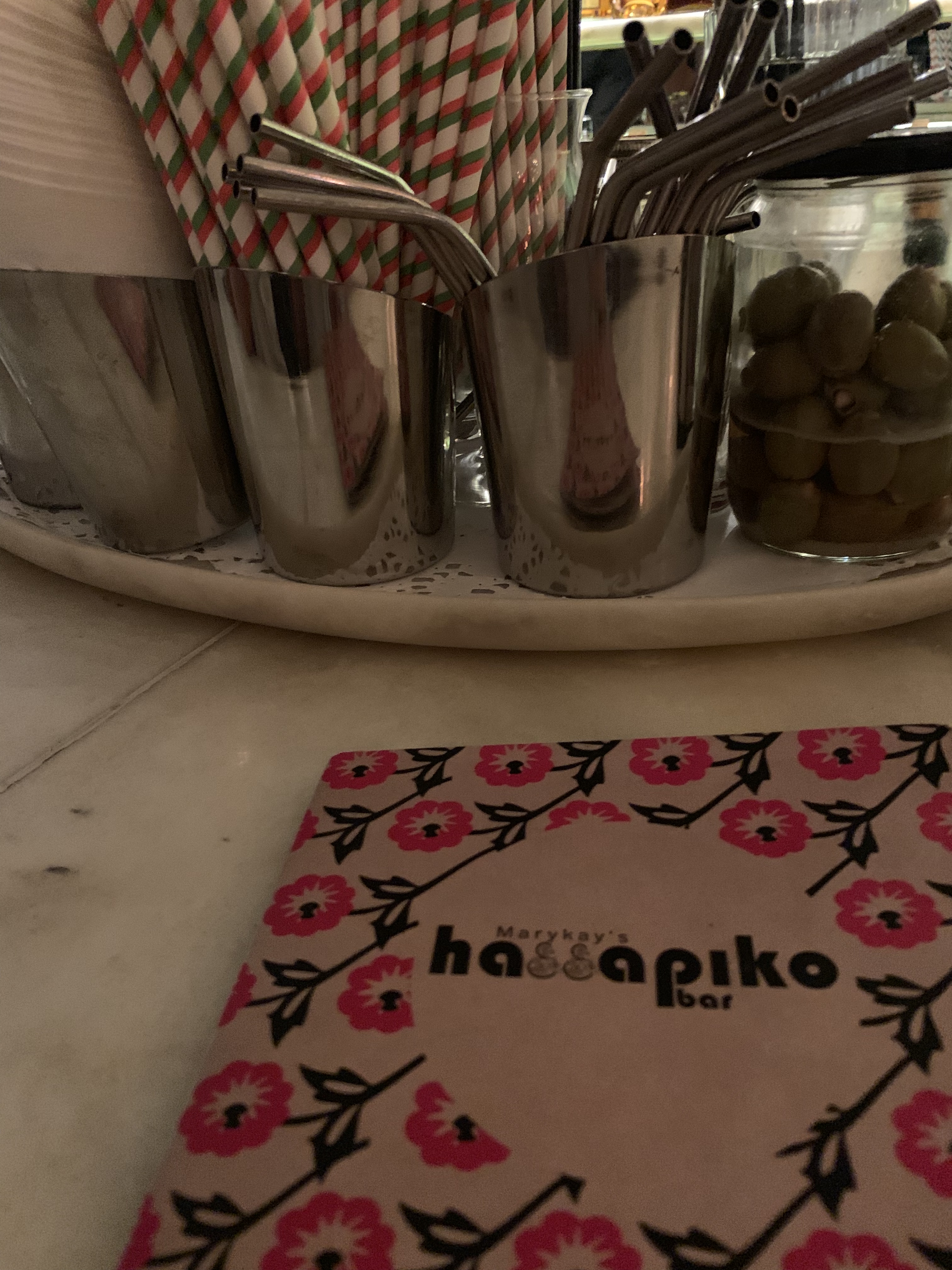 The couple we’d buddied up with were also staying in Oia so we were the last four to get dropped off. Since we chatted the whole ride back we decided to drop our stuff off and meet up at 10 pm at Oia’s only real bar, Marykay’s. It used to be a butcher shop, hence the meat hooks by the entrance. Santorini is not a party town like Mykonos, but it was good to experience some nightlife and this place made a mean cocktail.