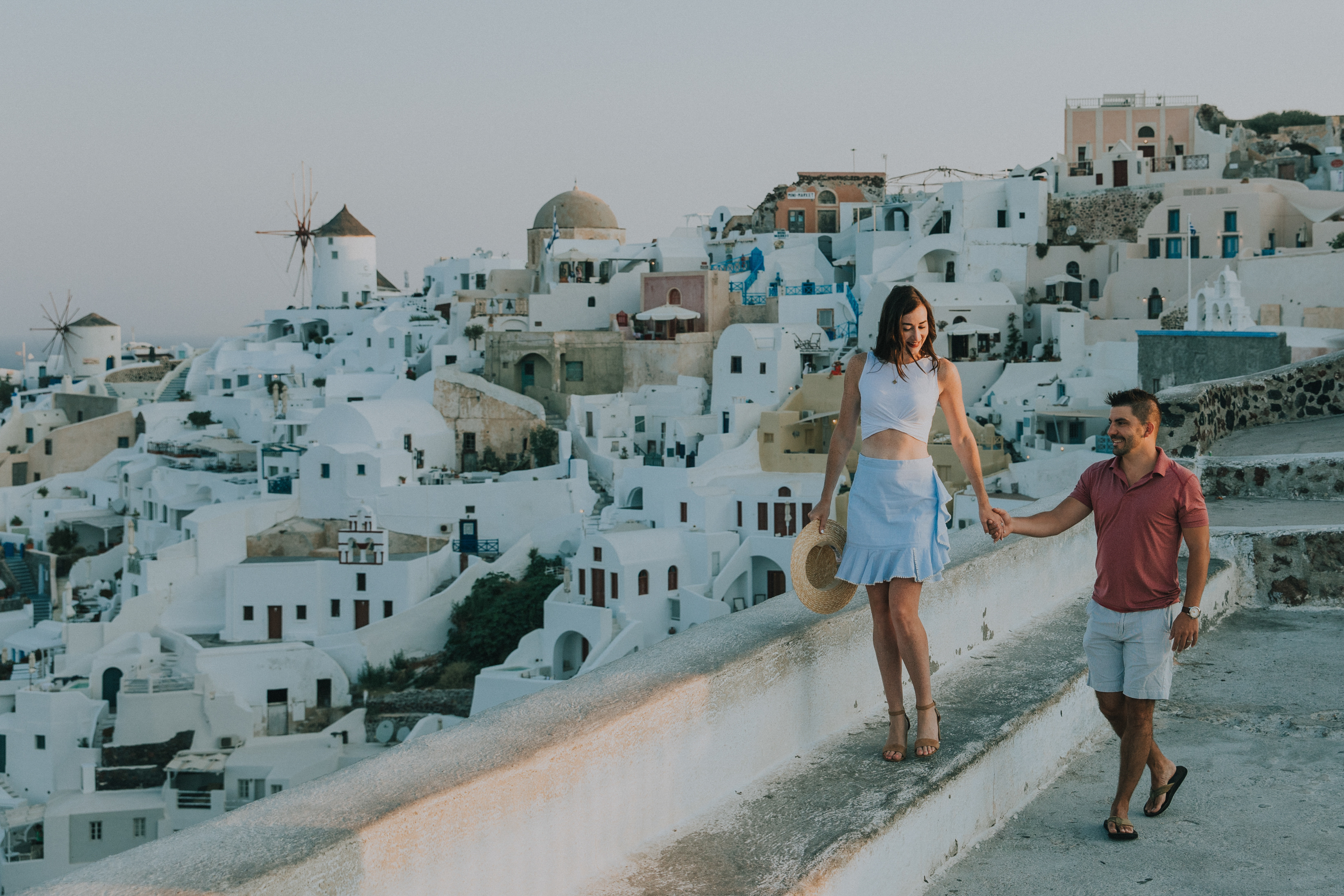 - The first thing you want to do when choosing a hotel is to pick what part of Santorini you want to stay in. We knew we wanted to stay in Oia. It’s where all those gorgeous photos you see are taken. I wanted PICTURESQUE. It should be noted, though, that everyone else wants this too, so it gets crowded. Knowing this, I intentionally searched for quieter, resort-like hotels so we could still feel secluded and relaxed. Fira and Imerovigli are the other two main areas. Fira is the main town area (think: hustle bustle and shopping) and Imerovigli is much quieter.
