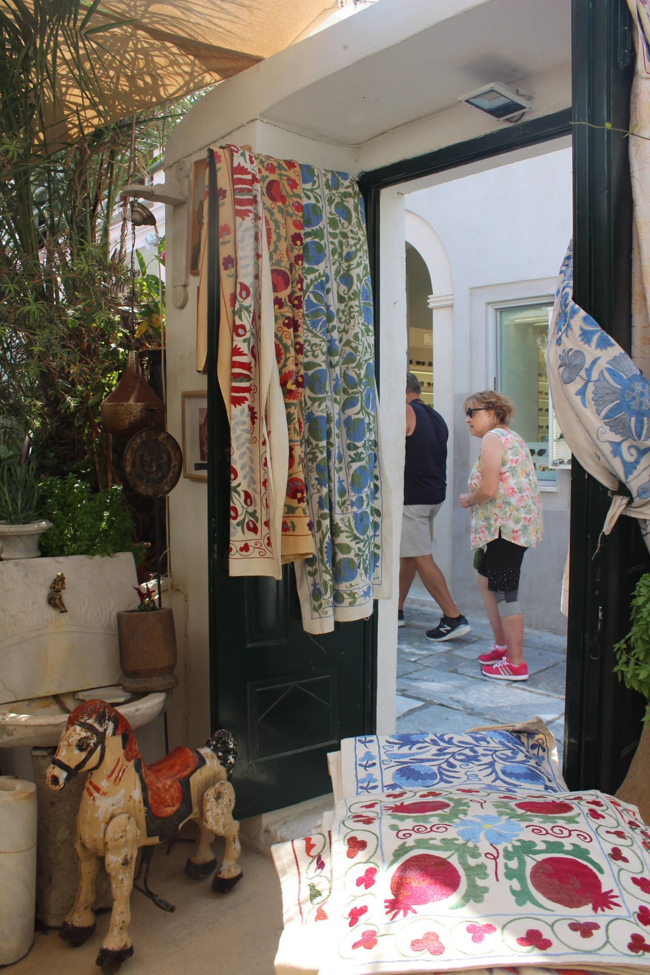 In the town, I found my favorite Santorini shop…well second favorite after Atlantis Books. I don’t even know the name, but it had some incredible antiques, some art, and beautiful linens. I bought a pillow cover for a throw on our bed.