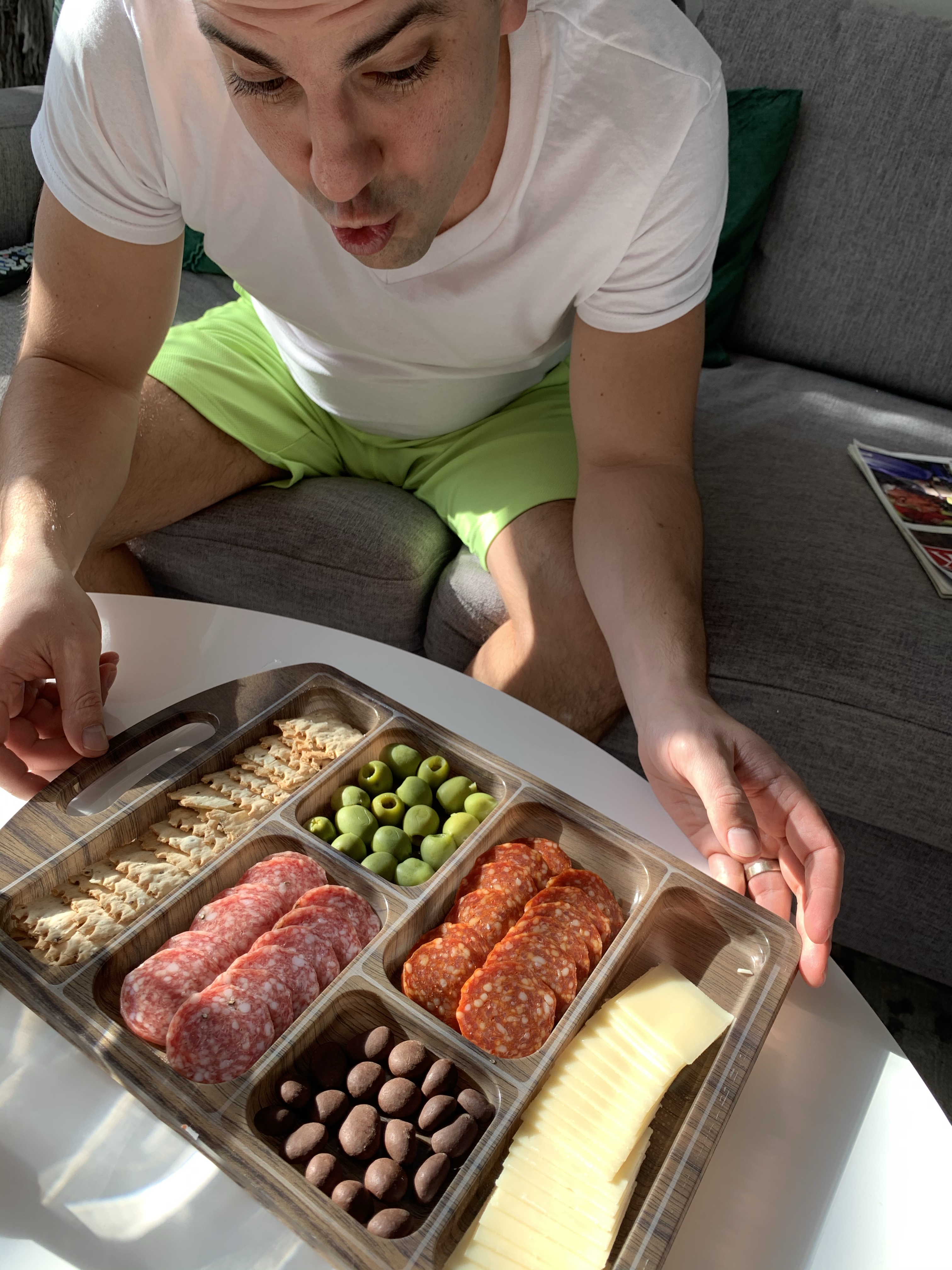 I am alllll about making meat and cheese plates – in fact, I think I have a knack for it – but my beau took on the duties this week and was very proud of the pre-made platter he discovered at the grocery store. Appetizer platters of any kind seem to just make us so happy.