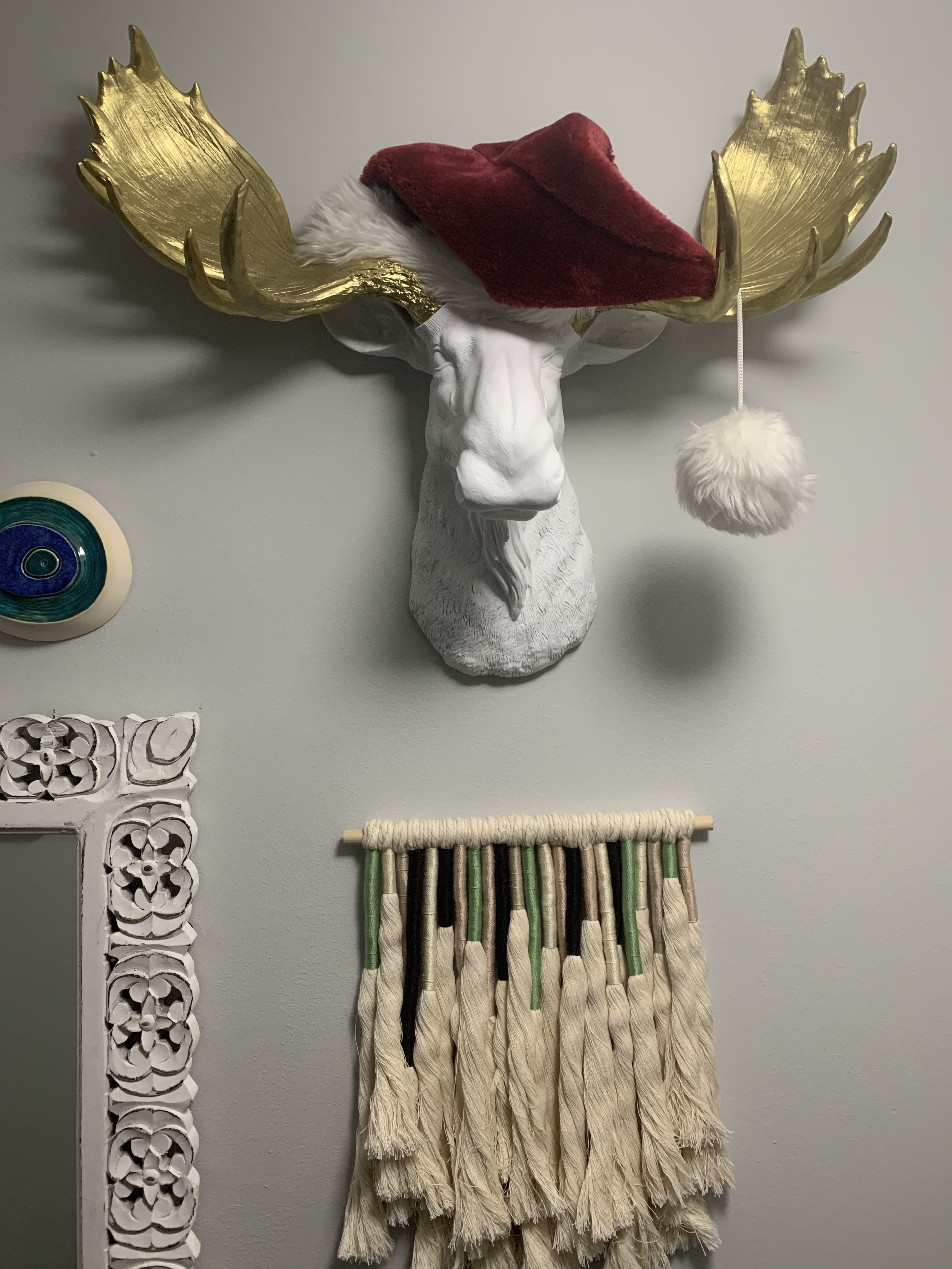 We’ve done a nice job decorating our apartment with a tree, garlands, and other seasonal decor, but my favorite festive moment is seeing Horace Moose all decked out.