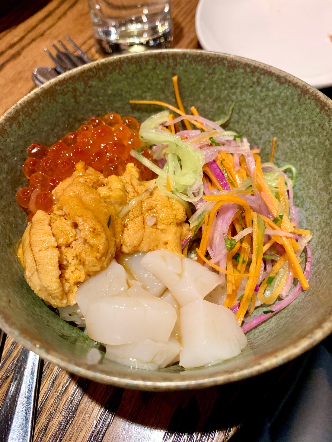 We ordered brussels sprouts, which is the only thing I didn’t take a pic of because it was the only thing that wasn’t really memorable. They’re good but not much different from what you see on many a menu nowadays. It seemed everyone preferred the rice cakes with spicy sausage. It definitely packed some heat and I enjoyed it, but it was the Maine uni & scallop over rice with trout roe, and sesame furikake that I found most memorable of the small plates. Honestly, if I could have a slightly larger bowl of this all to myself for my meal I’d be very happy, indeed.