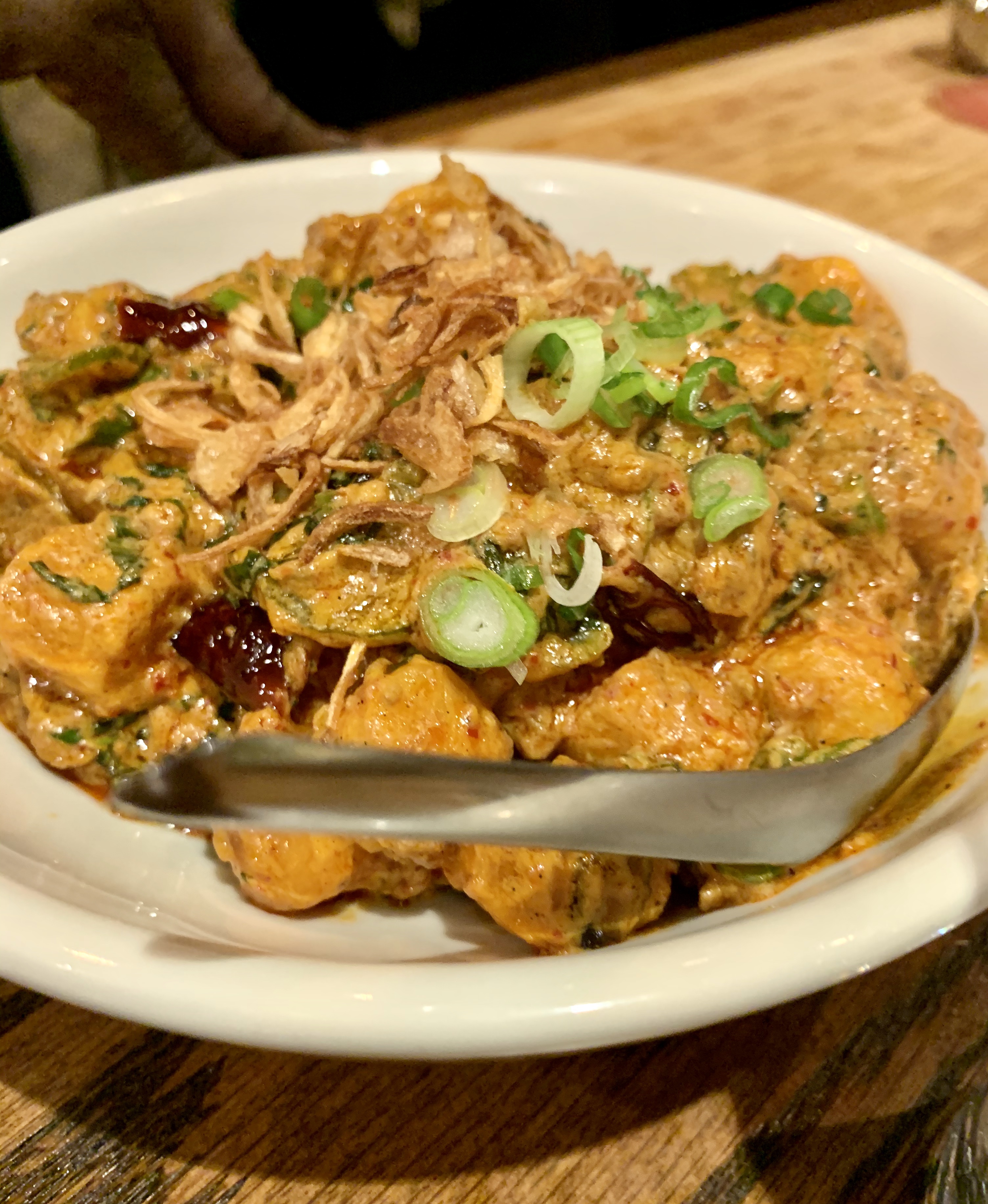 There were six of us, so we ordered a large chunk of the menu. We started with the pork buns, of course. I’ve had these at their other restaurants so I knew they’d be good. They were, but no surprises there.