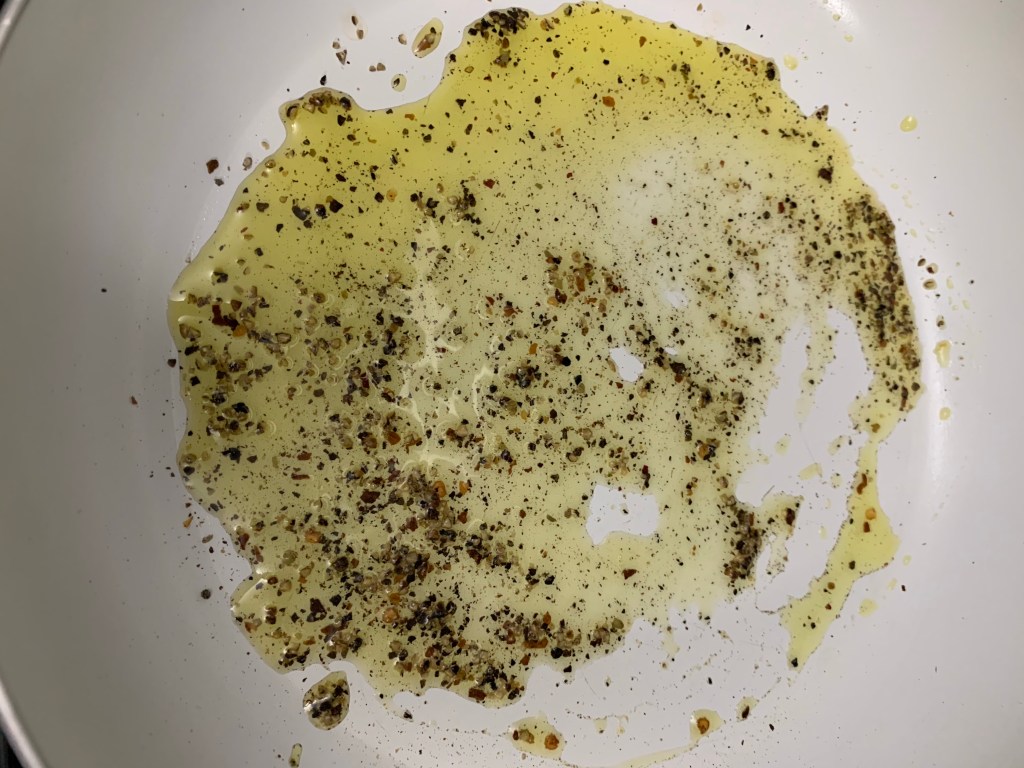 Start by melting butter in a saucepan with fresh cracked pepper. Add a bag of shredded brussels sprouts, a large handful of parmesan, and toss to coat. Toss in some pine nuts (the recipe calls for walnuts but I had pine nuts handy and prefer them anyway) and call it a day.