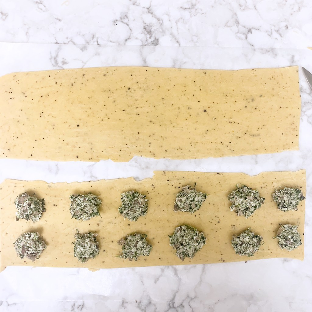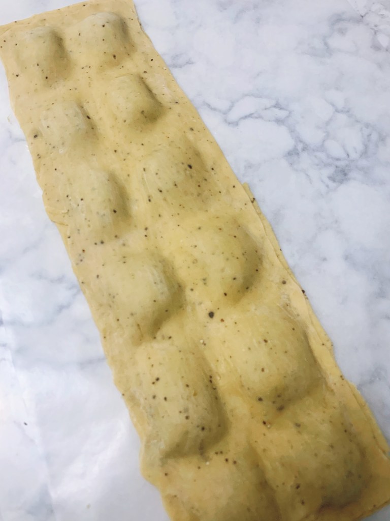 Life is full now that I’m in the fresh pasta game. I started extra simple with spaghetti cacio e pepe. This time, I wanted to test myself. It was ravioli time. I didn’t want to go too crazy by doing a meat filling – that would be one extra step I didn’t feel like taking on a Monday, but I did go beyond plain cheese.