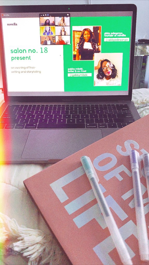 I was so sad when Novella faded away – I totally understood; it was a side gig for the founder and incredibly time consuming, but I so enjoyed the opportunity to workshop my writing and and hear from a diverse group of smart and interesting women. That’s why I’m so happy my favorite writing salon returned this week for a virtual writing salon. It actually worked really well in Zoom format. We had some freewriting time and took advantage of the breakout room feature for some more intimate conversation. Somehow, I worked up the courage to share my piece in front of the entire group. It’s always scary sharing a piece (I’ve done it less than a handful of times), especially when your piece takes on a very different tone than everyone else’s. But it was worth it. I’m crossing my fingers in hope that this was not a one-off and Novella will return to being a continuous presence in my life.