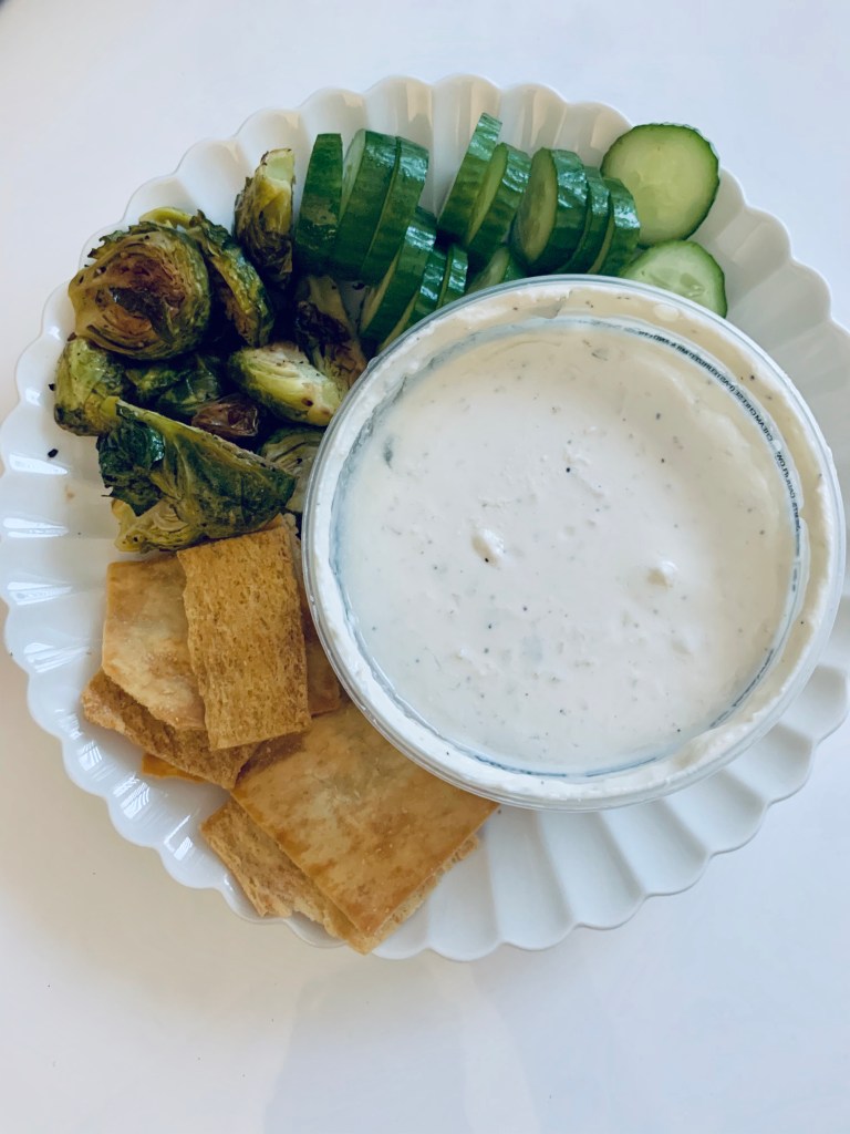 I went a little wild at TJ’s, but I just couldn’t help myself. It was so nice to stock up on my favorite products that I can’t get elsewhere and to finally get my hands on some new products I’d been reading about. One such new product is the cauliflower jalapeño dip. Wow. Don’t worry, it’s not spicy, but it is amazing. Such great flavor and not too unhealthy. It’s a new go-to.