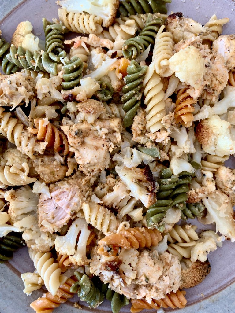 The end result is a soft cauliflower that’s nice and charred on the bottom edges. I added some extra salt and nothing more, but you could always pour some sauce over the top (mmm parmesan cheese sauce). And FYI, I tossed the leftover cauli with some leftover pasta, leftover chicken from a Zunzi’s sandwich, and parm…and it was GREAT.