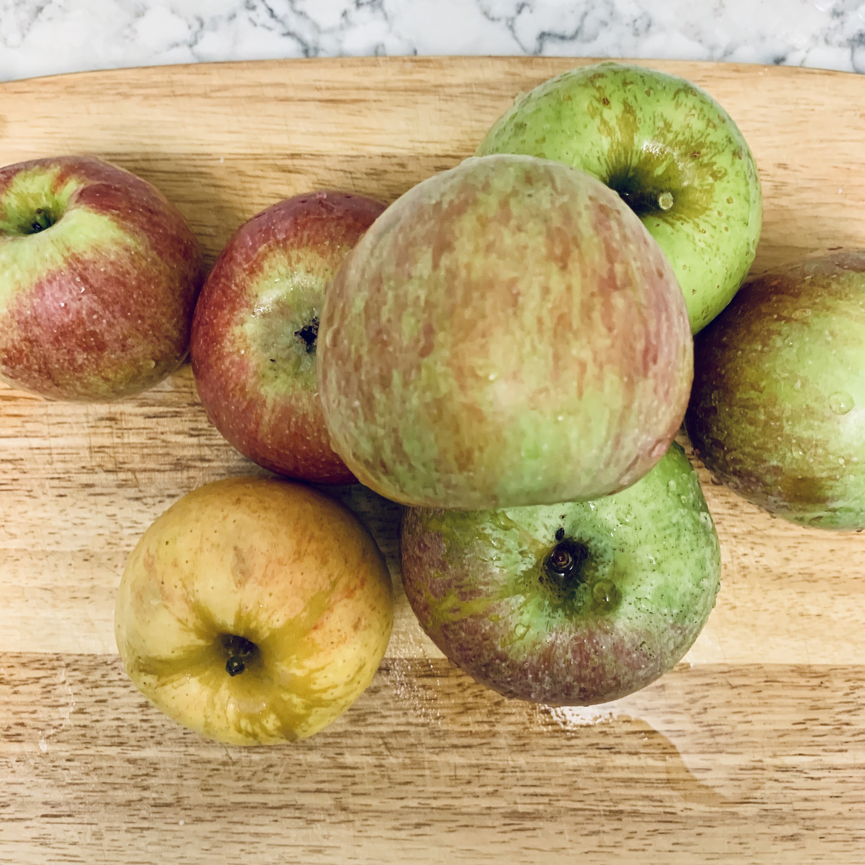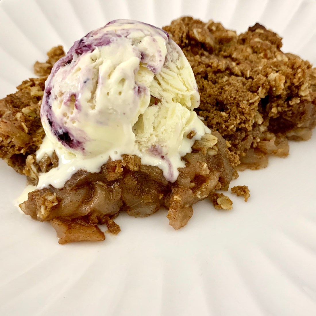 Place 1 stick (1/2 c.) butter in a pan with 1 tbsp vanilla extract in a pan and start melting over medium heat. Whisk constantly until the butter starts to foam and then let it go for another minute or two until it starts turning caramel in color and smells a little nutty. Remove it from the heat and pour into a bowl/measuring cup to cool. Once cooled a bit, mix with your prepared topping (I used about 1.5 c. of topping, but every version will be different.) Now place 6 thinly sliced (and peeled) apples, 1 tsp cinnamon, 1/2 tsp cardamom, 1/8 tsp ground cloves, and 4 tbsp bourbon (maybe more if you really want to taste it) in a large bowl and toss to combine. Put the apples in a prepared baking dish, top with the now crumbly topping, and bake at 350 for an hour to an hour and 10 minutes.