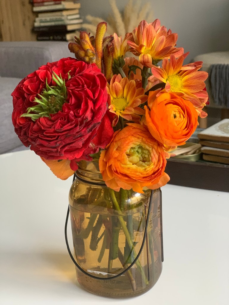 We rented a car on Sunday which meant a trip to Trader Joe’s was in order. Of course I got myself nice and stocked up on goodies, but I also made sure to get some of their flowers. They usually have such a great selection for an incredible price. And It’s made me so happy having some fall florals on the coffee table this week.
