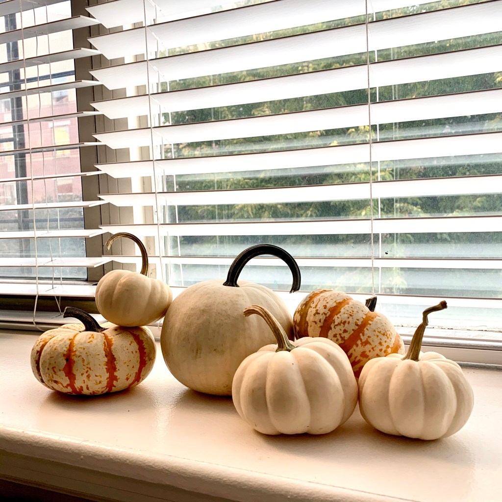 I picked up some pumpkins while apple picking and made myself a nice little centerpiece. I was really feelin the white look.