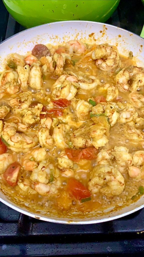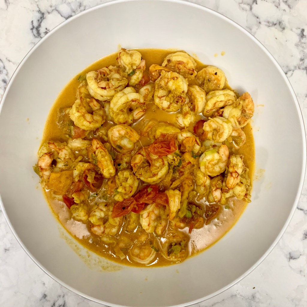 I didn’t anticipate liking this dish as much as I did. When I have shrimp for supper, my mind automatically goes to the meals and flavors I’m most familiar with: blackened shrimp and grits, shrimp dip, low country boil…you know, Southern things. This shrimp was out of my comfort zone but turned out to be right up my alley.