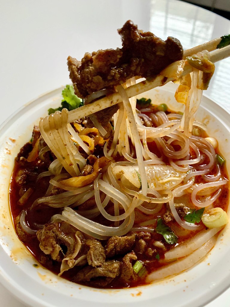 I decided to try both a noodle soup and dumplings. I had to get both because I was going with glass noodles in the soup which meant I’d be getting noods that weren’t made in-house. That meant I needed something from the in-house portion of their menu and dumplings were it. I went with the beef and chive and they were perfect. The wonton wasn’t too thick/gummy, the filling was ample and flavorful, and the sauce was the perfect balance of salty and tangy. For my noodles I got the cumin lamb soup and chose medium spicy level (it wasn’t too spicy). You can choose your noodles and I went with the thin glass kind because it’s just what I was feelin and they were great. This was a truly delicious soup with amazing broth and tons of mix-ins. This is not a situation where sipping liquid and swirling your chopsticks around trying to nab a bit of floating meat. In fact, portions across the board are on the up and up. I enjoyed my noods enough that it will be hard to order anything different; but don’t worry, I intend to work my way through the menu.