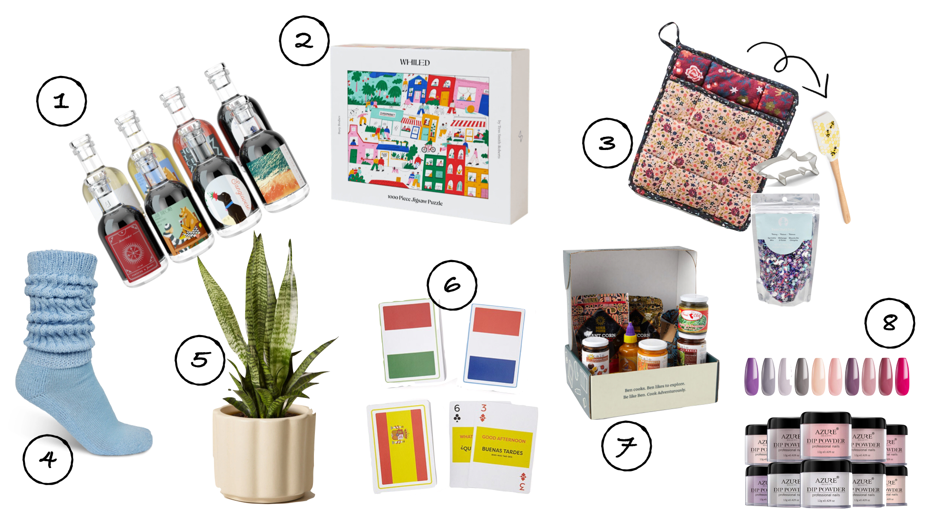 - Brother Vellies’ cloud socks became suuuuper popular during quarantine. When you’re stuck on the couch all day, you might as well feel extra cozy, right? I really wanted to try them out and see if they were worth the hype but couldn’t bring myself to spend $35 on a pair of socks that nobody else would even see. But that’s what makes them the perfect gift – it’s something your friend probably won’t buy for herself. (Note: I’d recommend giving these to your trendy friend – my Mom, for instance, would never realize what a big deal these socks were and would be all “Great. My daughter gave me the most boring looking socks.” and stuff them in the back of a drawer.)