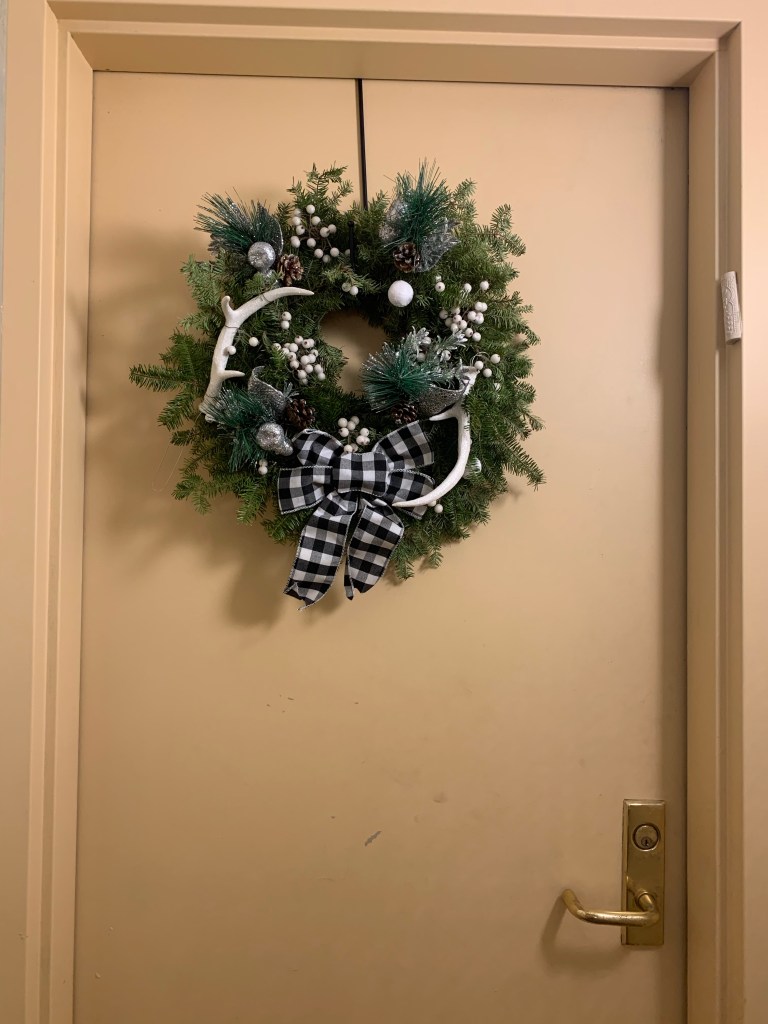 I really wanted to try and make my own wreath this year – it was time to up my holiday game. Decorating a living wreath is a tad messy and not as simple as I had thought, but I love the outcome. It’s hard to tell, but those antlers are glittery because why not go a little extra?! (And, yes, I do love the juxtaposition of the wreath and the mezuzah.)