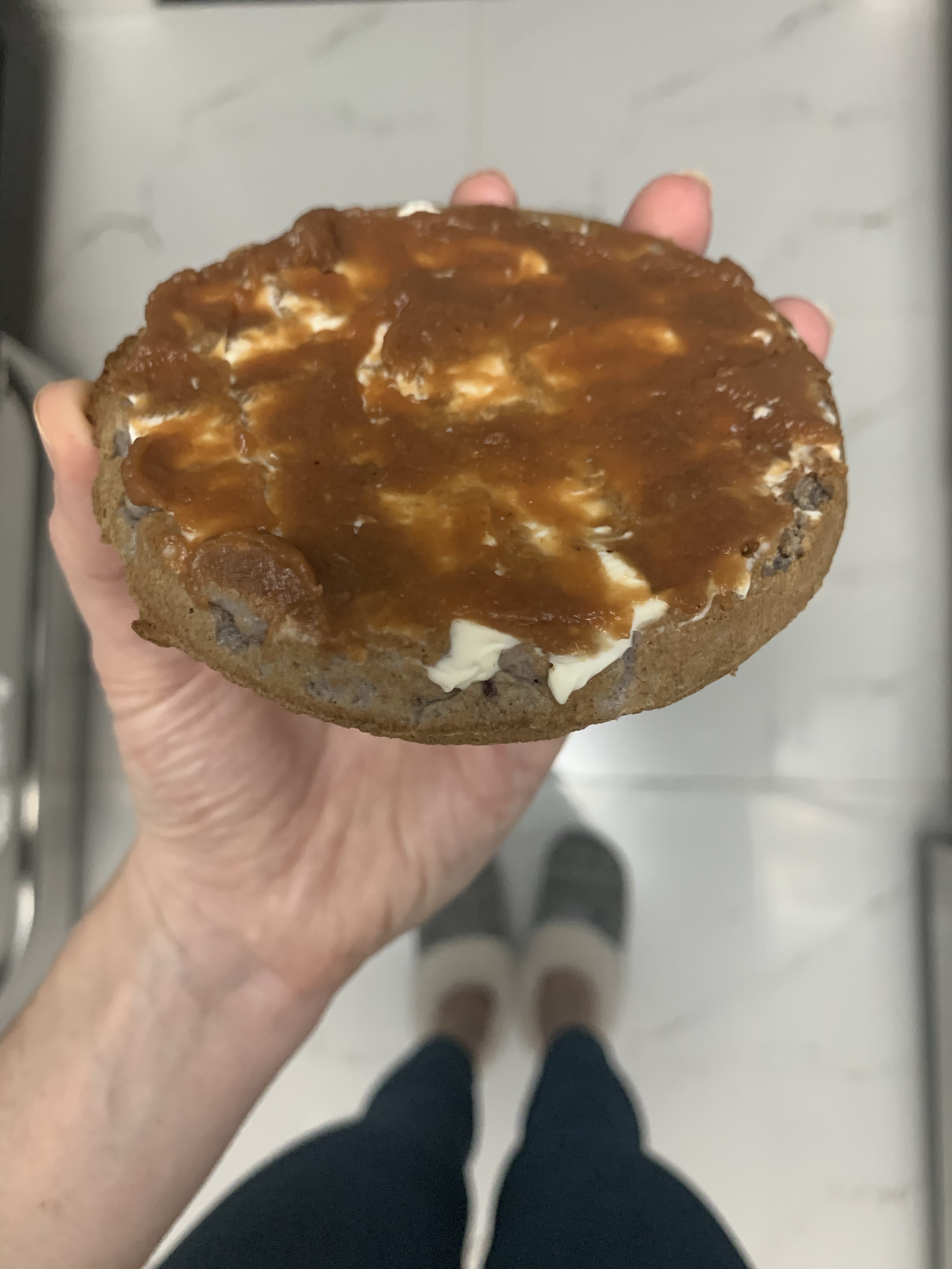 - Frozen Waffle: Topped with a thin layer of cream cheese and a thin layer of jam or apple butter. I’m not really into sweet breakfasts and the cream cheese gives it that slight tang needed to offset the jam.