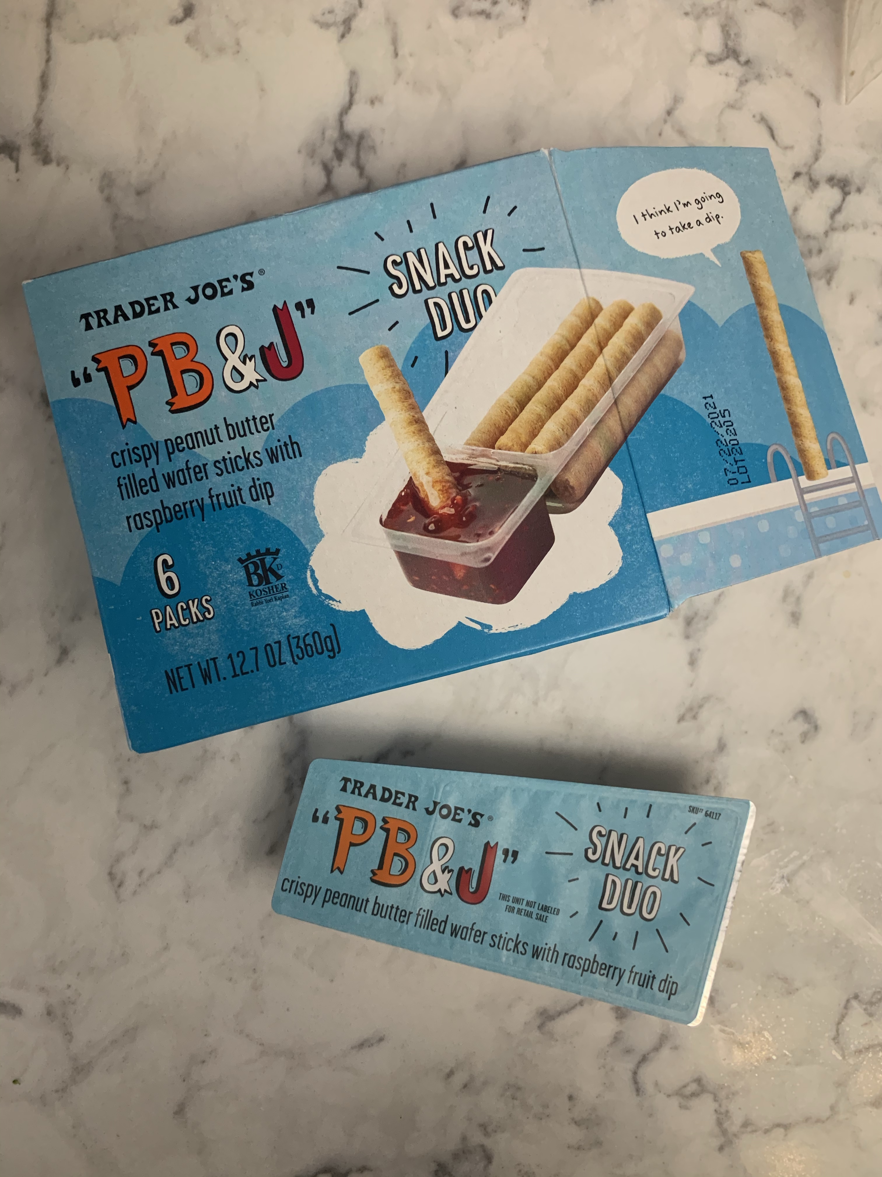 - Snacks: Since true breakfast food doesn’t totally rock my world, I’m often happy grabbing something that’s traditionally an afternoon snack, like a granola bar or a package of Trader Joe’s pb&j snack duo.
