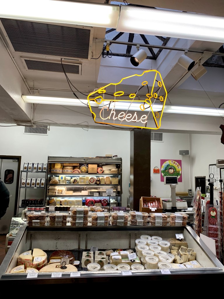 You’ll see a coffee setup right when you walk in – we tried two varieties and had them ground for the French press – and just beyond that is the bulk food sections. This is where you can get nuts, dried fruit, and chocolates. I was pretty stocked on that stuff so I skipped it and headed straight for the next section: cheese, identified by its neon sign. I was drawn to that sign like a mosquito to a bug zapper. I tried one local cheese and one of the fresh fetas. This is where I started to realize how great this place was. There are 4 types of feta that they’ll slice off for you. I went with the Bulgarian because I requested a creamier feta.