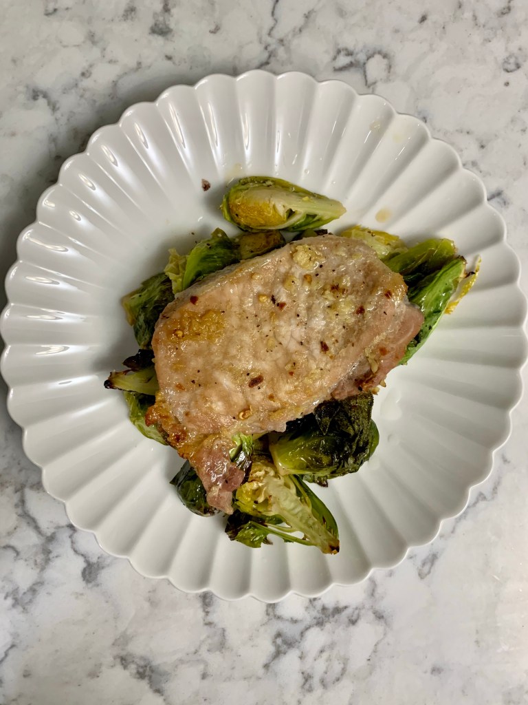 I have just started adding more Brussel sprouts to my meals, and this looks great with the pork chops.