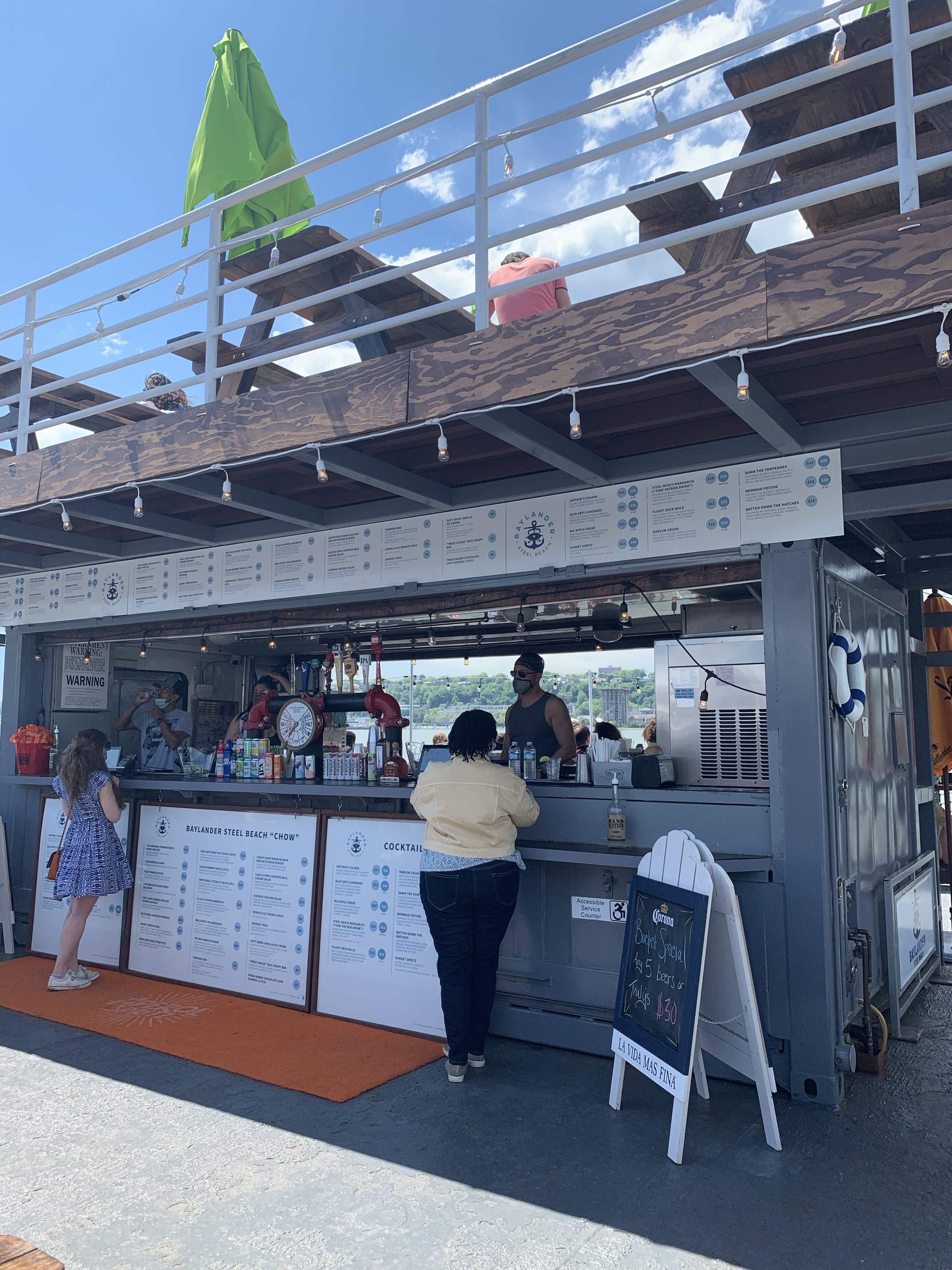 The Baylander is currently (and for the foreseeable future) docked at Harlem Piers at 125th Street (aka on the Hudson River at 125th). It just opened for the season and if you get there early enough, you should breeze right in, but I’m sure it’ll get packed as the summer heats up. They encourage walkups but you can also make a reservation, which you may want to do if you’re considering peak times.