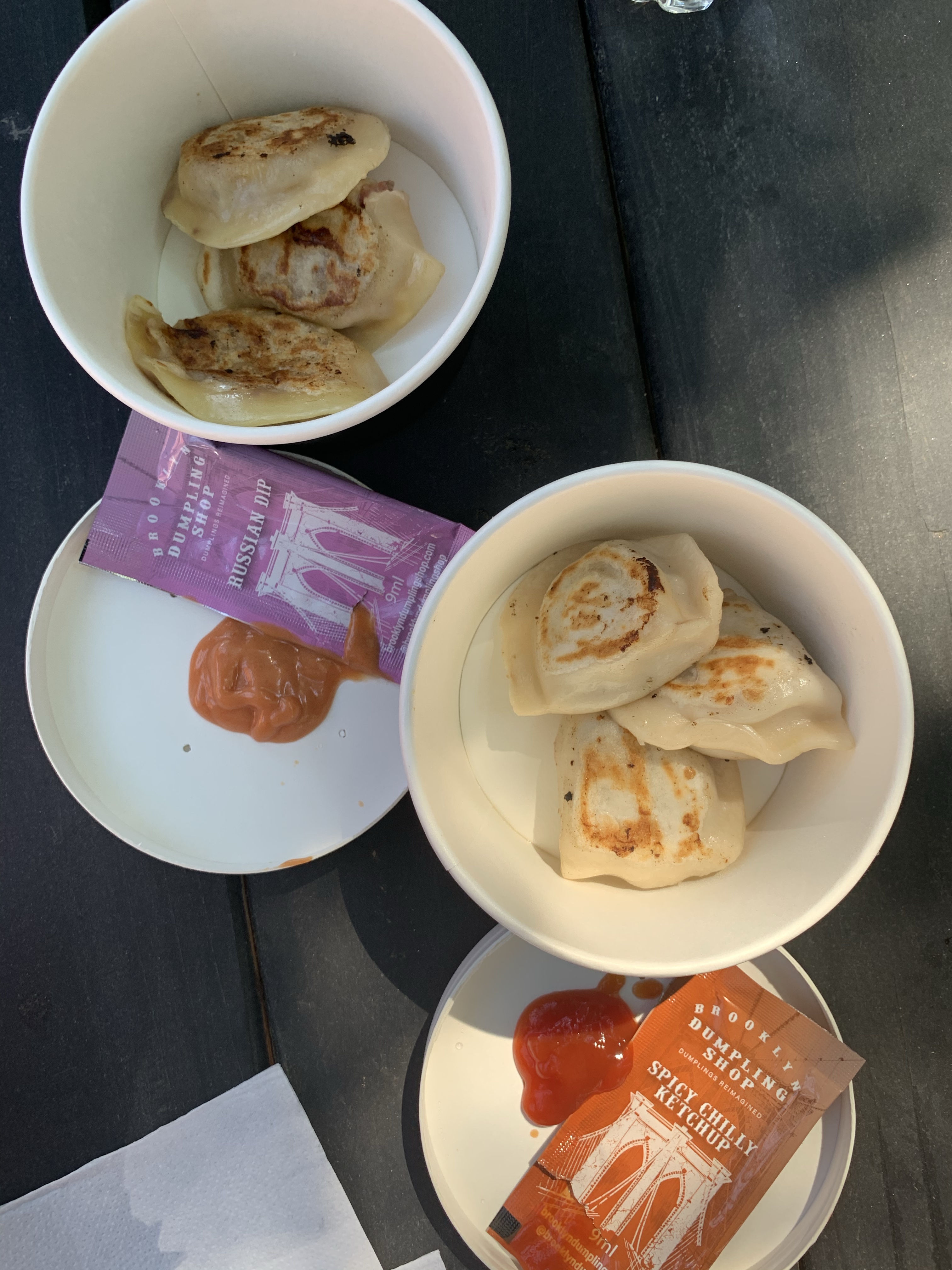 This place has gotten some nice buzz in the two weeks they’ve been open and clearly it’s inspired New Yorkers to test it out because almost every single flavor was sold out when we went. I’d love to go back and work my way through more of the menu, but the reuben and bacon cheeseburger (served with Russian dip and spicy chilly ketchup, respectively) were both quite tasty and packed with filling. Each order comes with 3 dumplings for about $6. That makes it cheap enough for a quick snack but a good bit pricier than, say, Dumpling Man across the street.