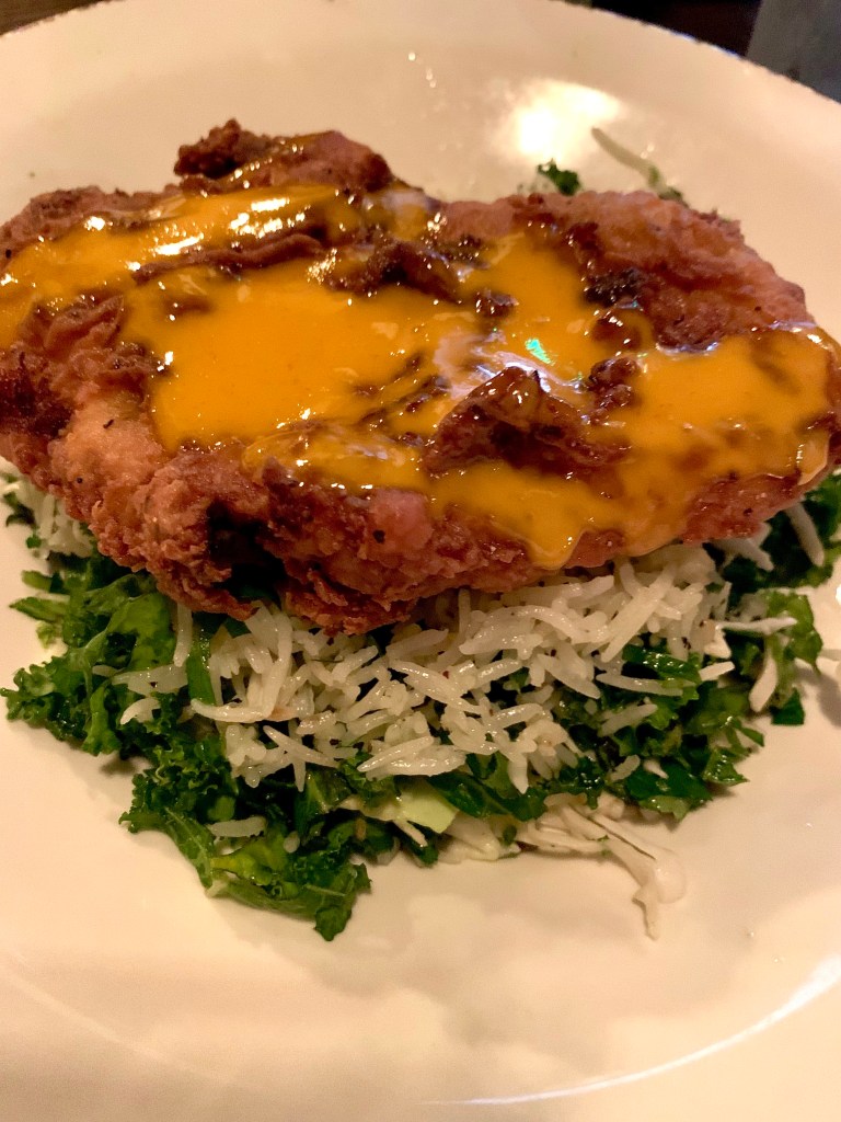 When we wanted a chill supper last week, my parents suggested Chow Daddy’s. I would call the menu Tex Mex with a Lowcountry spin. That means te queso is served with house-made potato chips rather than tortilla chips and you can find fried chicken and bbq sauce incorporated into the tacos and bowls.