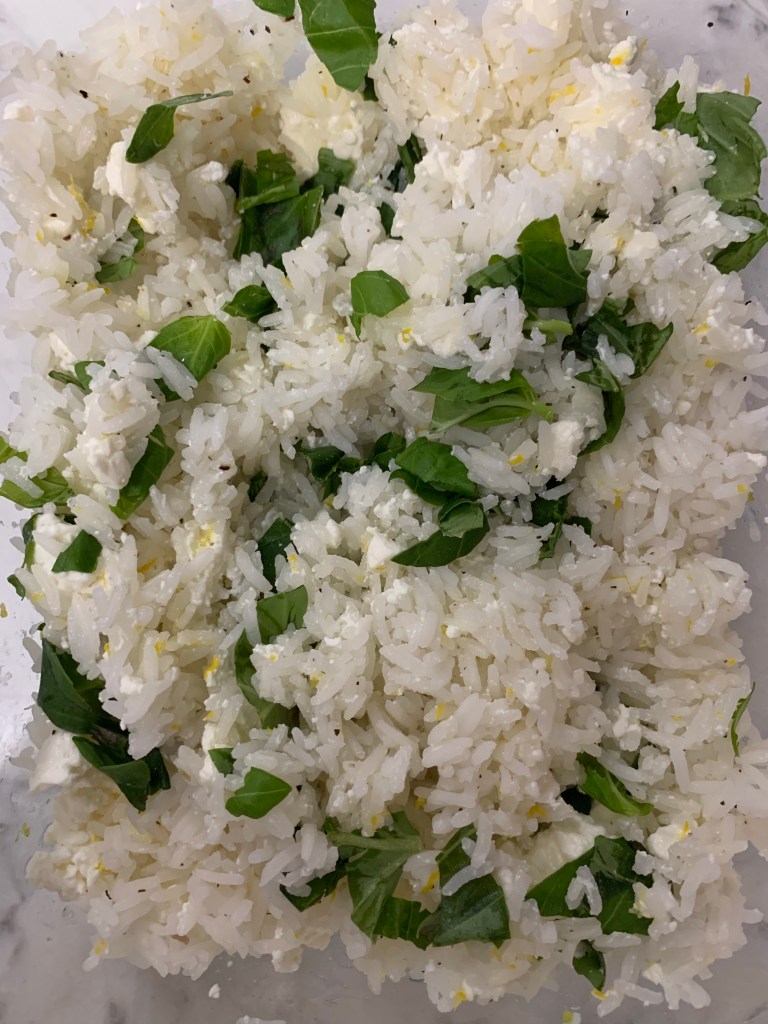 It’s simple and really doesn’t need any sort of recipe – just go with your gut. Cook up some rice (truly any kind will do – microwave is extra easy) and when it’s done, fluff it up with lemon zest, crumbled feta, torn basil, and salt & pepper. It goes great with pork tenderloin, simple baked/grilled chicken, salmon or swordfish….honestly it goes well with pretty much anything.