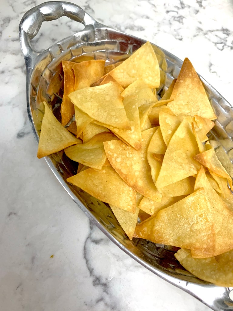This Taco Tuesday I tested out a ceviche-ish salad and didn’t realize til just before supper that there were no tortilla chips – recommended for the recipe – in the house. I did, however, have extra corn tortillas so I sliced them up, brushed them with oil, and stuck them in the oven for some homemade tortilla chips. Zero effort, big payoff. Tostitos who?